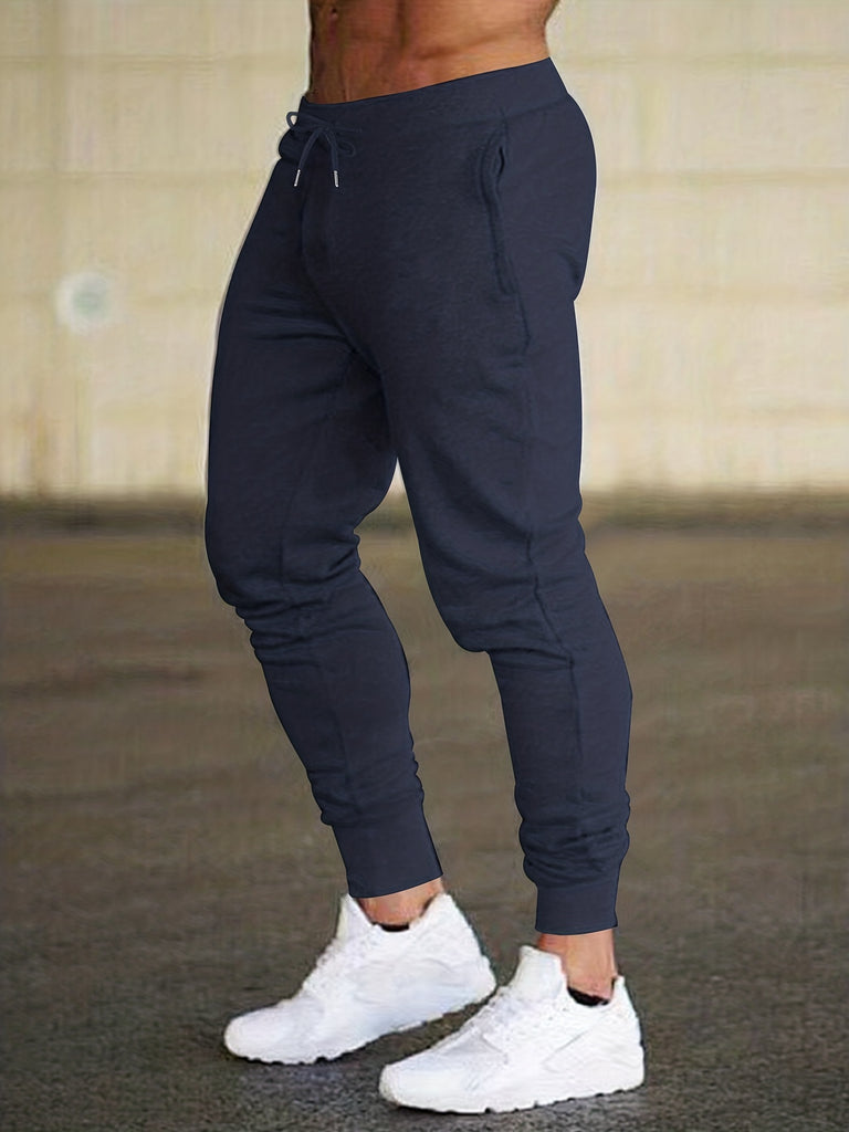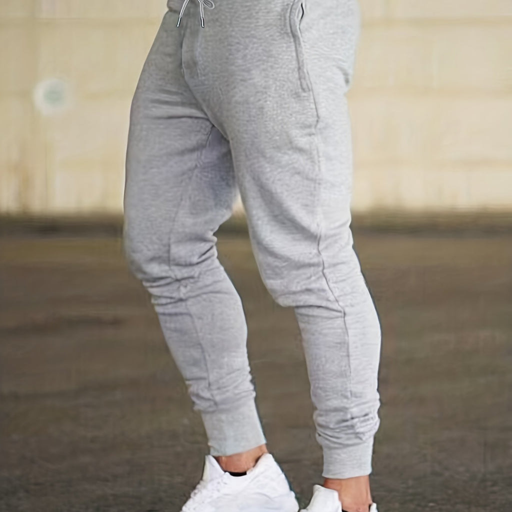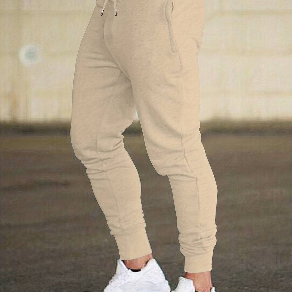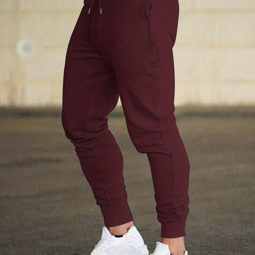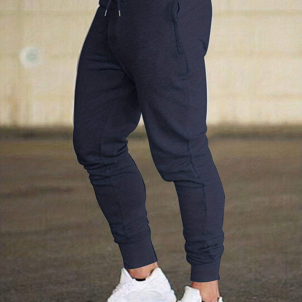 kkboxly Classic Design Joggers, Men's Casual Stretch Waist Drawstring Sports Pants Sweatpants