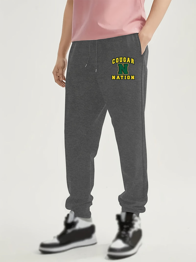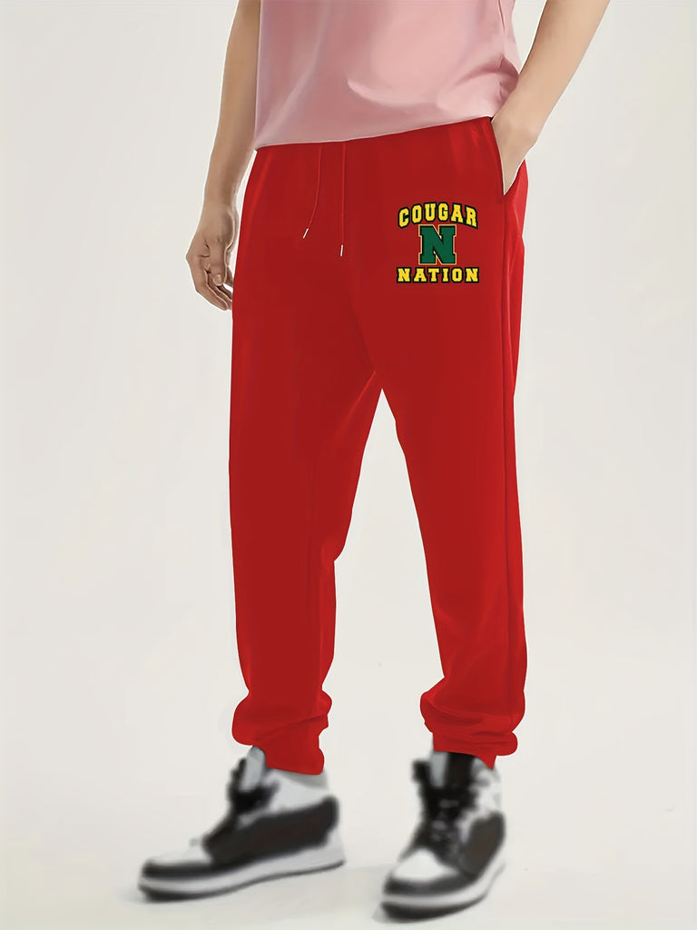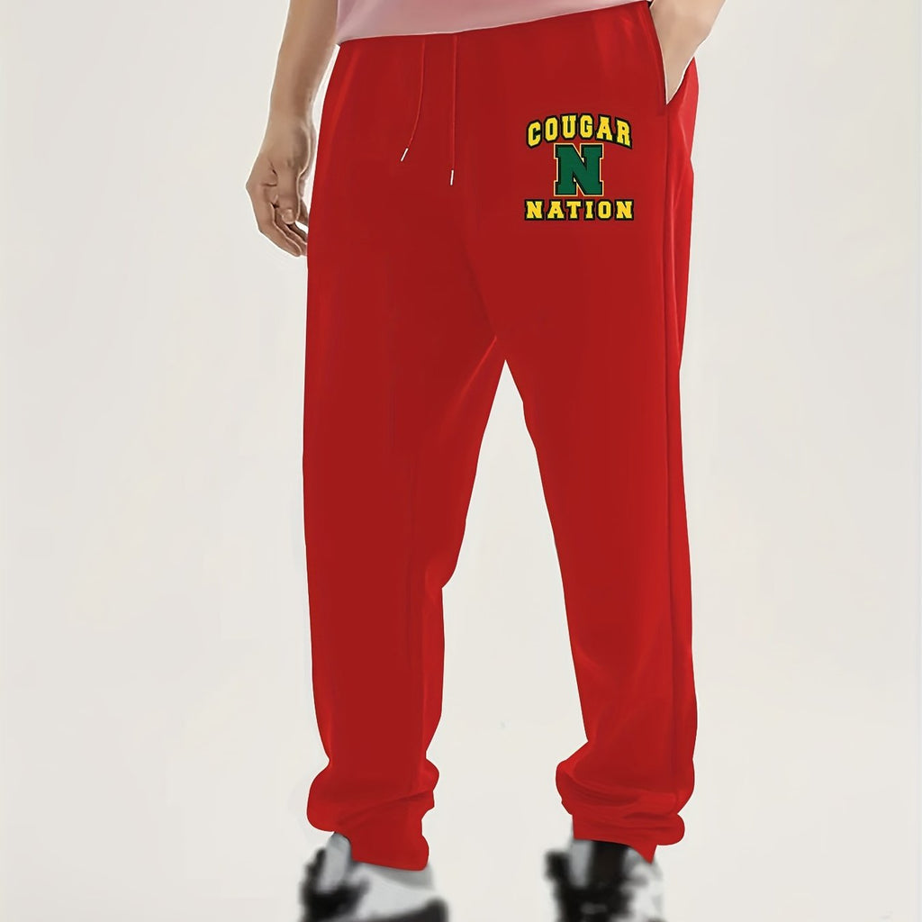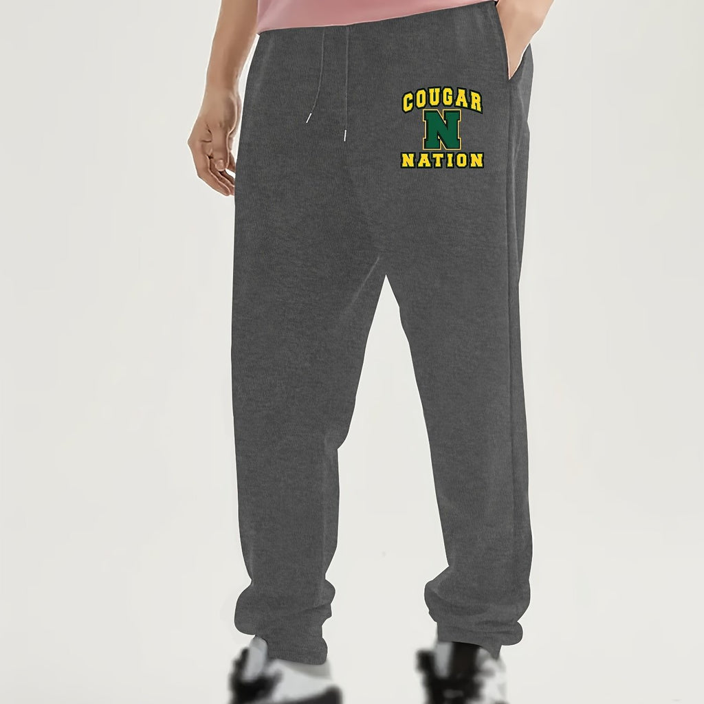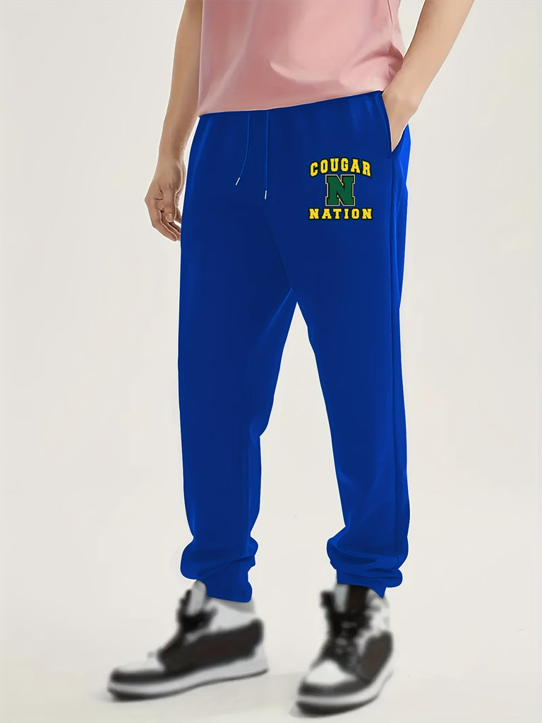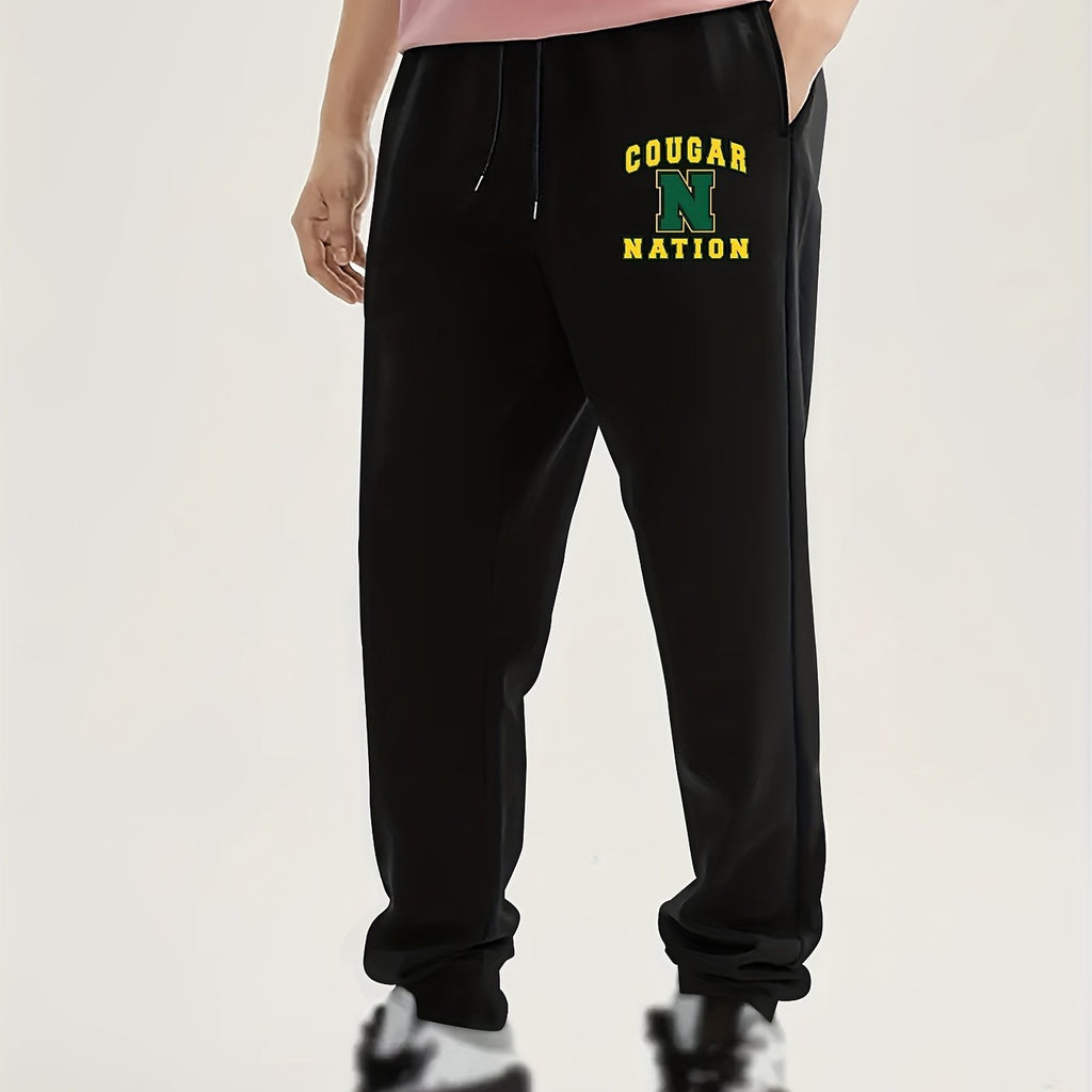 kkboxly COUGAR NATION Print, Men's Drawstring Sweatpants With Fleece, Casual Warm And Comfy Jogger Pants For Men