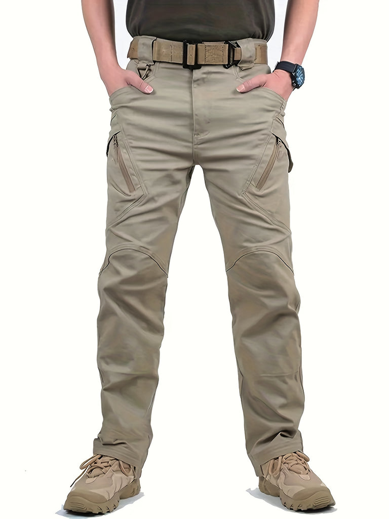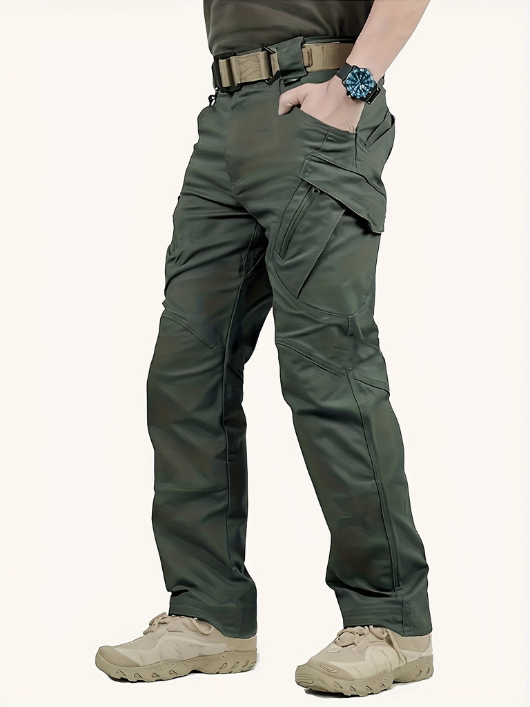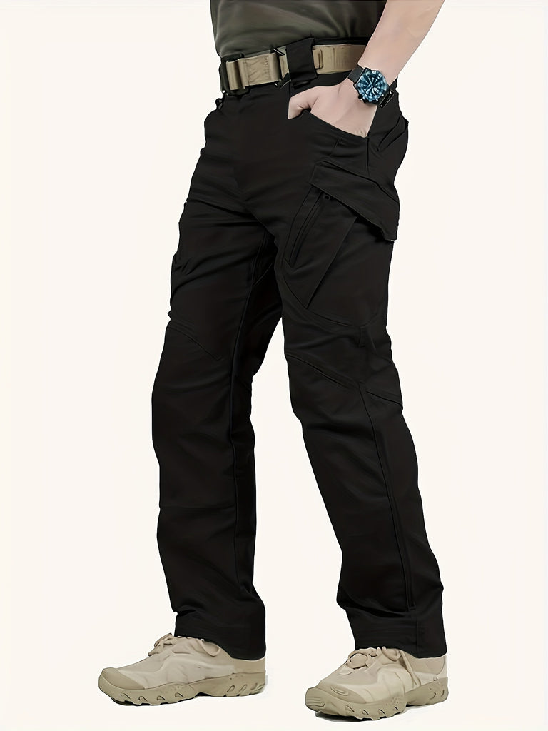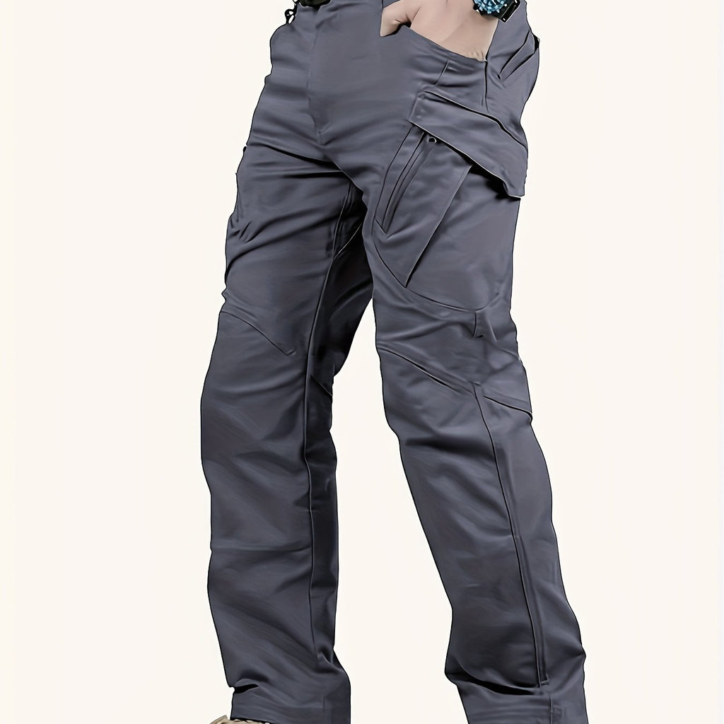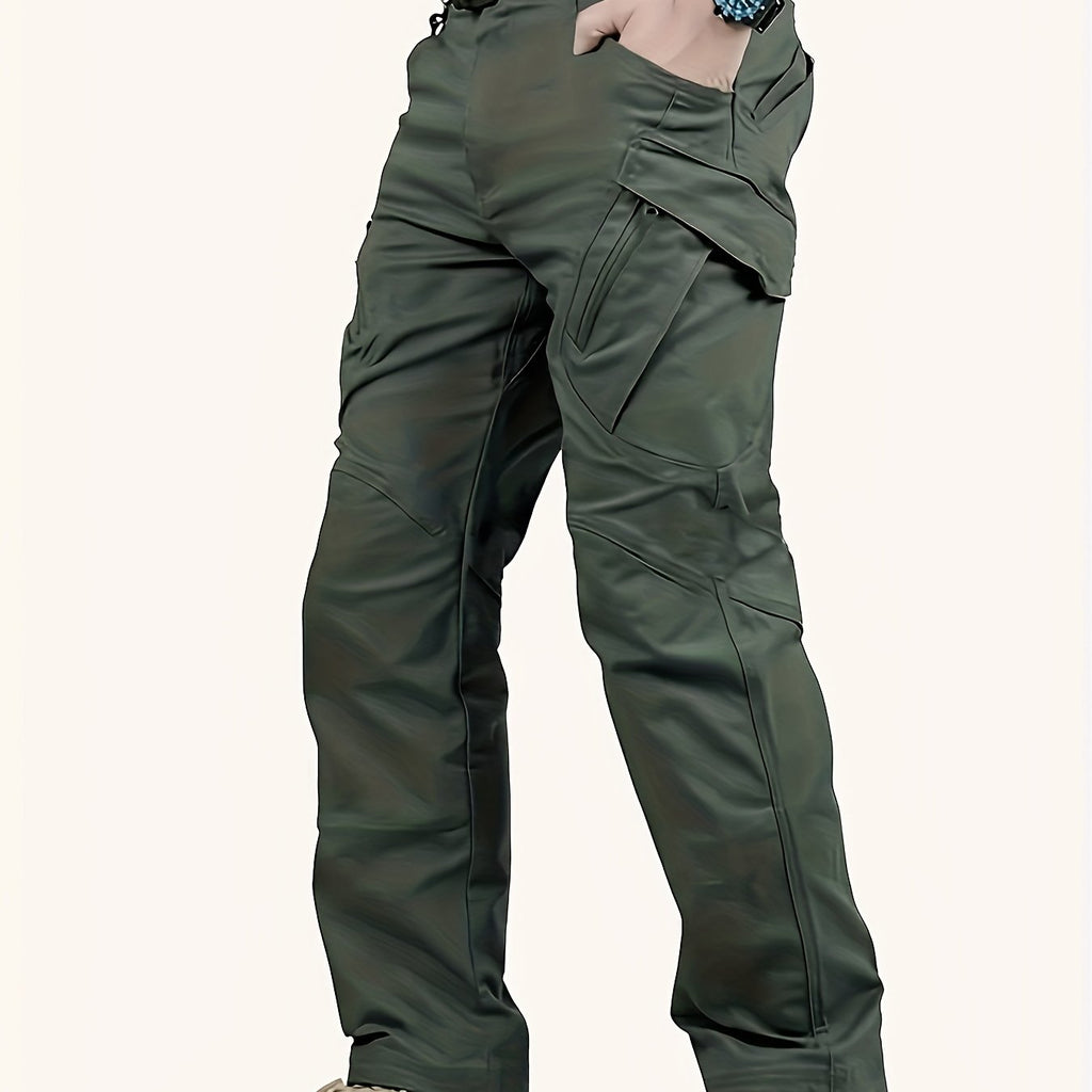 kkboxly Men's Durable Cargo Pants, Men's Solid Waterproof Tactical Pants With Multi Pockets For Outdoor Hiking