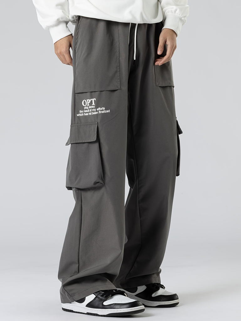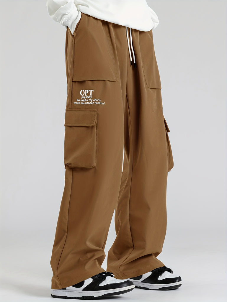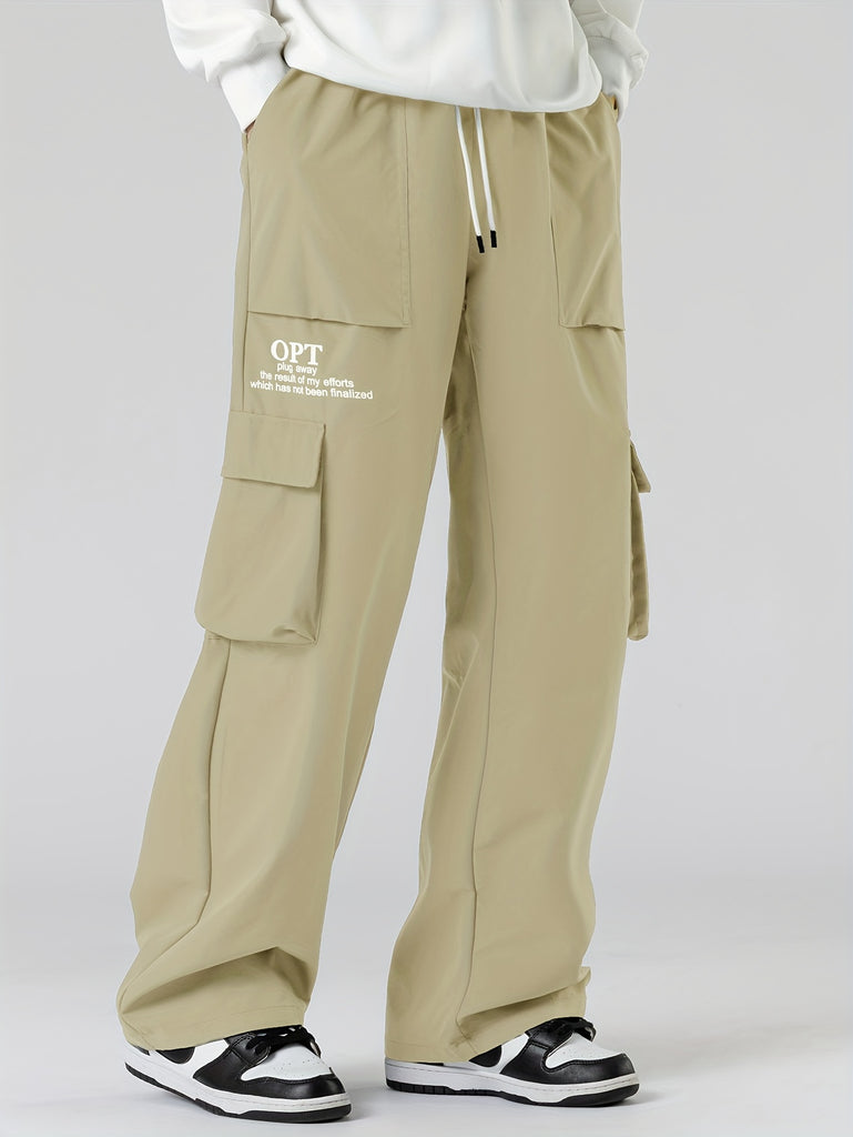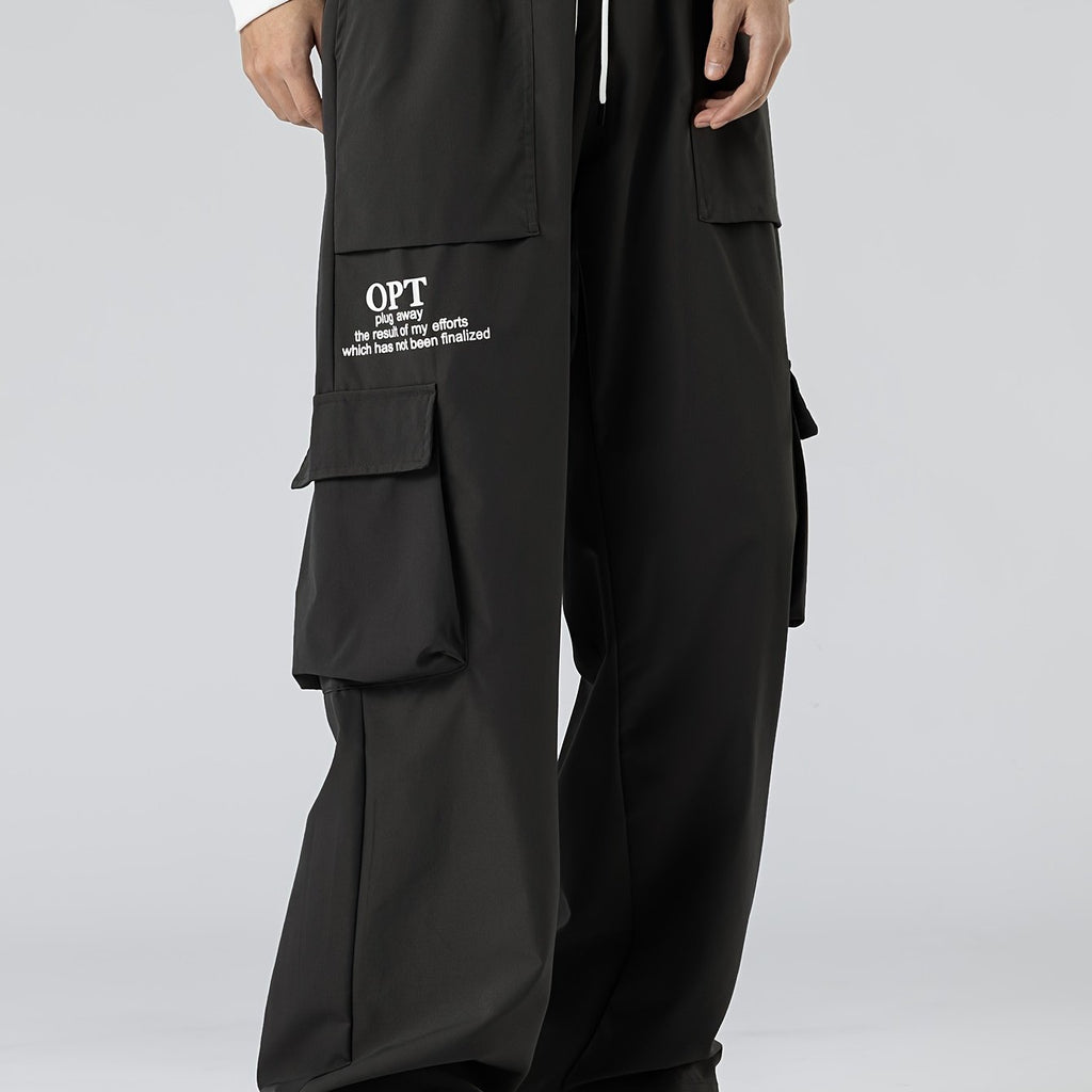kkboxly Men's Relaxed Fit Drawstring Cargo Pants With Pockets, Loose Trendy Overalls