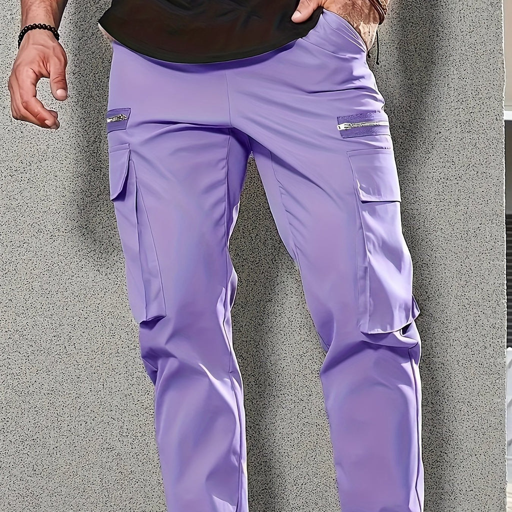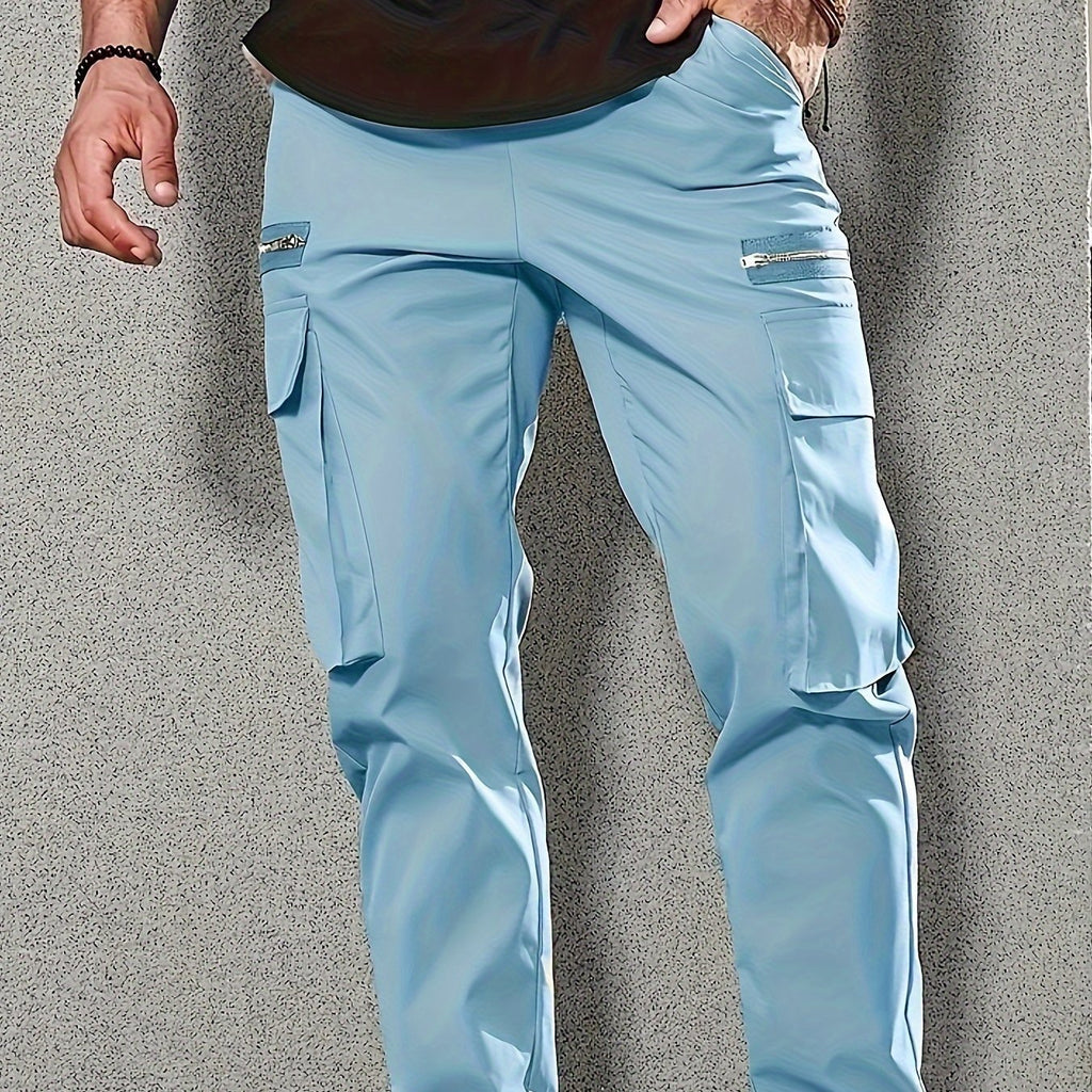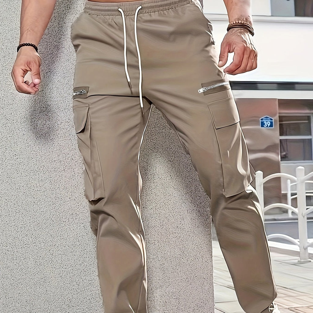 kkboxly Men's Trendy Solid Tactical Pants, Casual Multi Pockets Trousers For Outdoor
