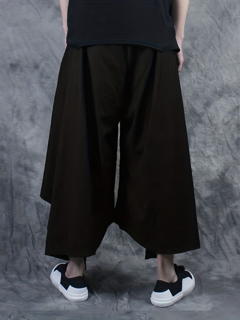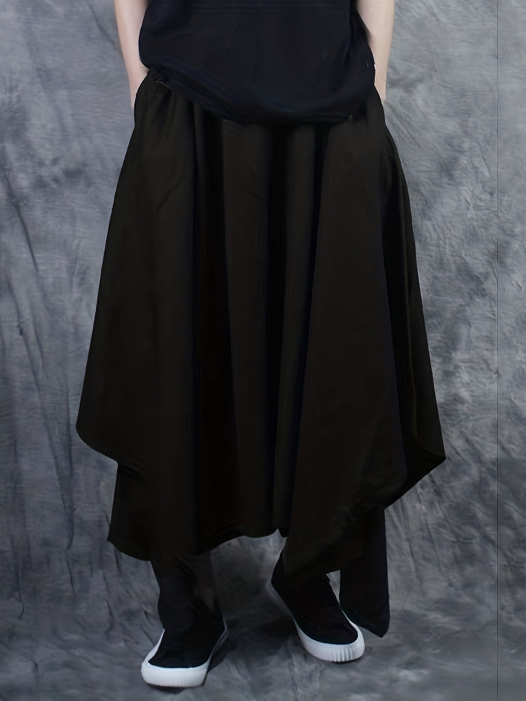 kkboxly Plus Size Mens Harem Pants, Elastic Waist Streetwear Loose Fashion Irregular Skirt Trousers Men Solid Joggers Casual Pants