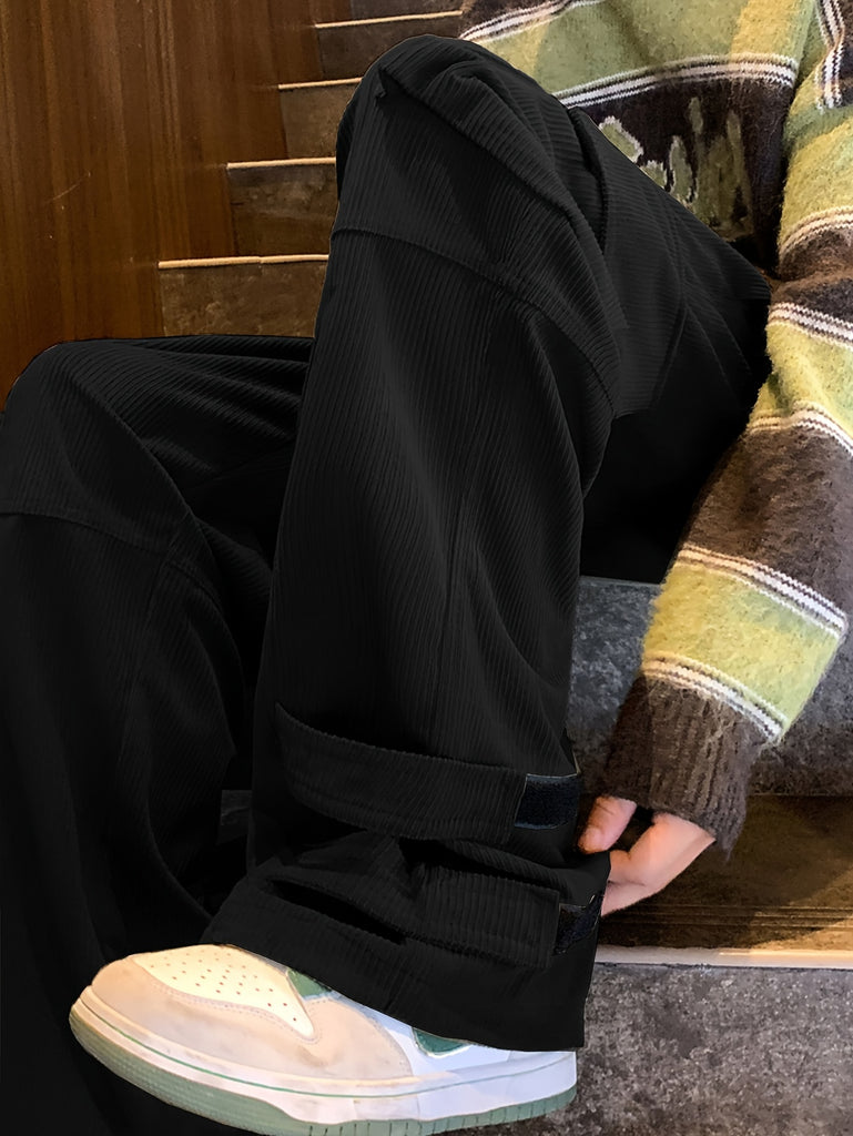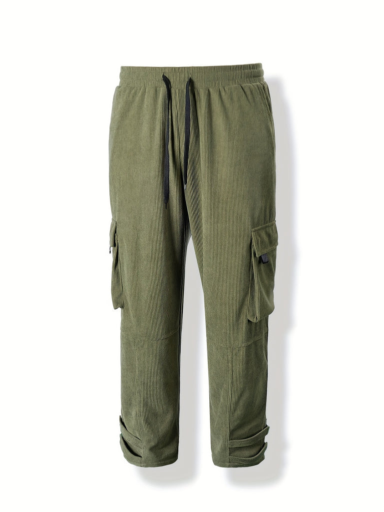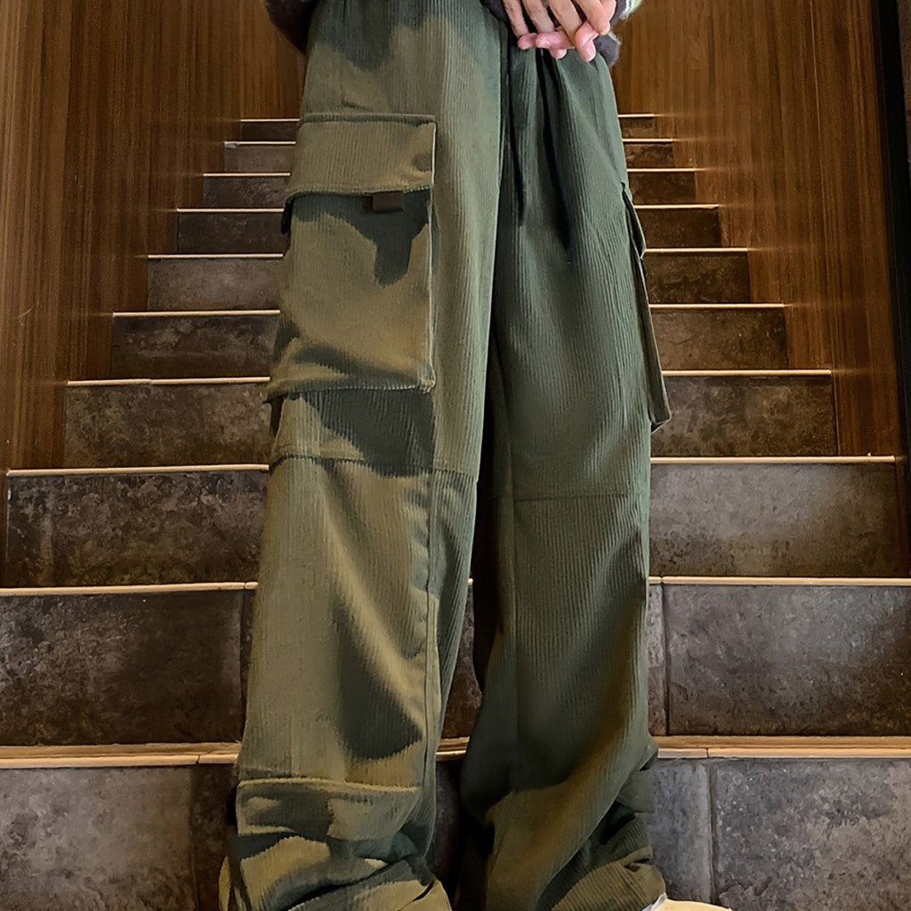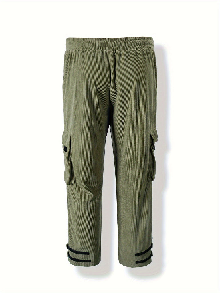 kkboxly Solid Casual Corduroy Men's Multi-pocket Drawstring Loose Long Pants, All Seasons Outdoor, Street And Leisure