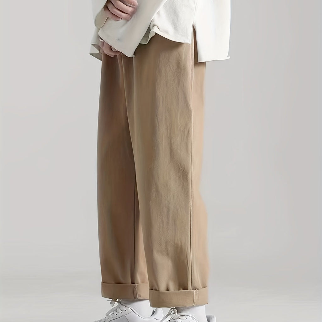 kkboxly Solid Men's Straight Leg Cargo Pants, Loose Casual Outdoor Pants, Men's Work Pants For Hiking Fishing Angling