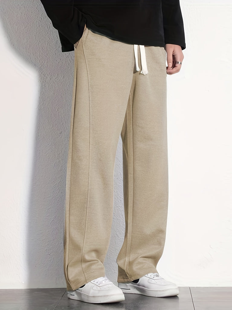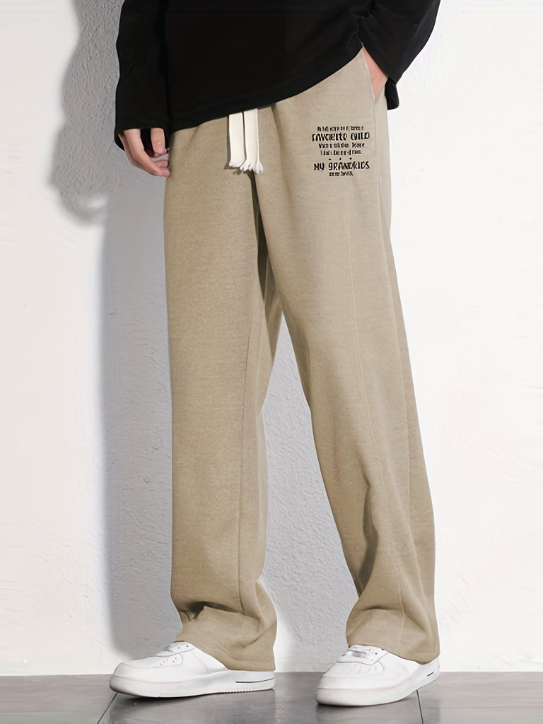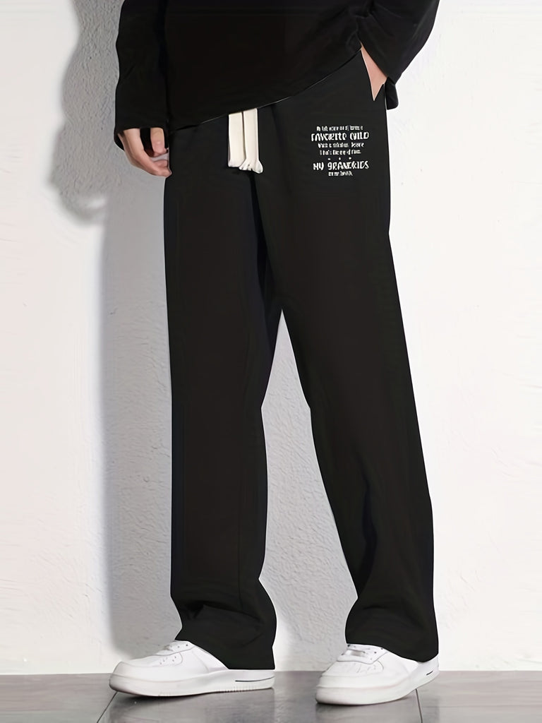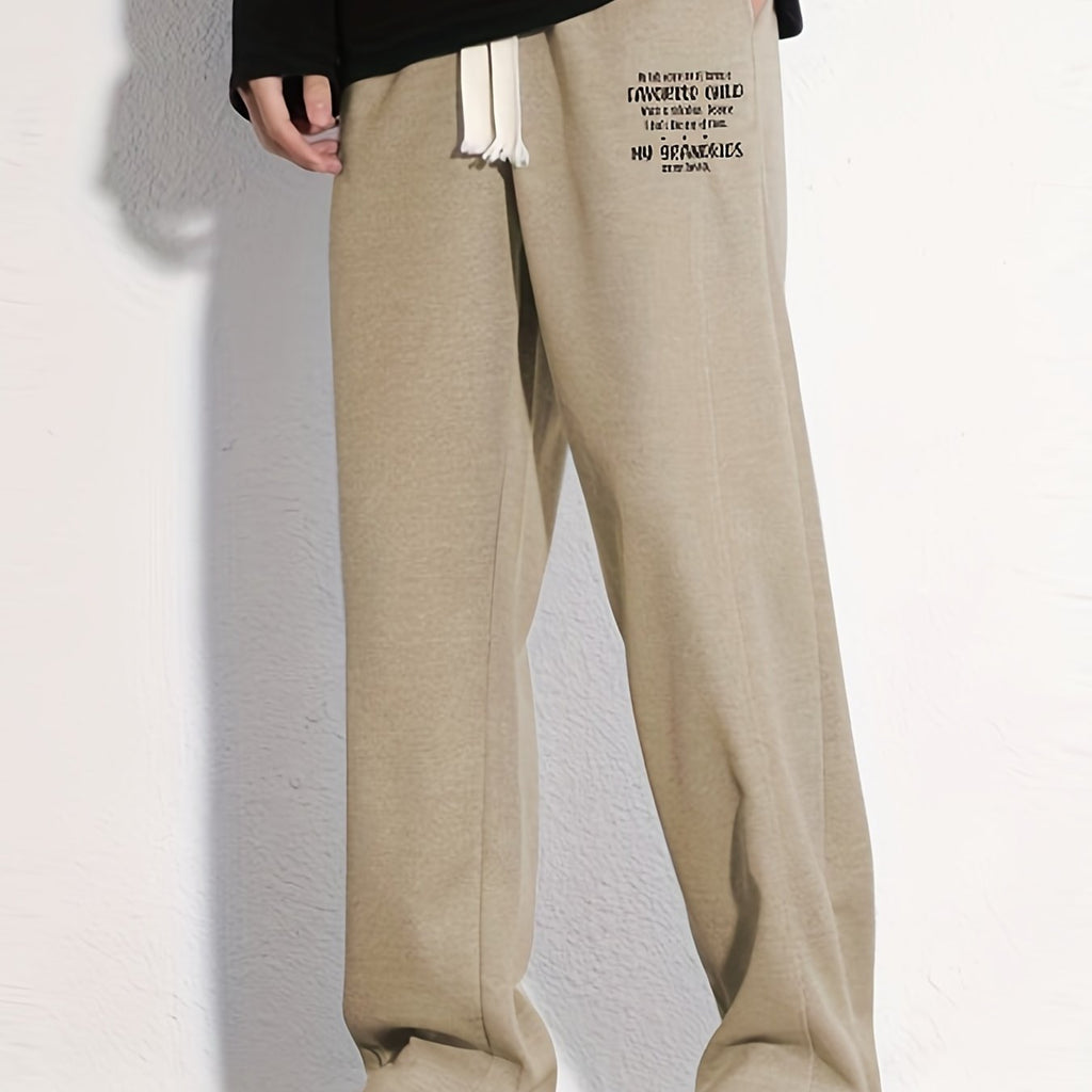 kkboxly Stylish Letter Print Casual Cotton Loose Fit Drawstring Pants, Men's Pants For Spring Summer Outdoor