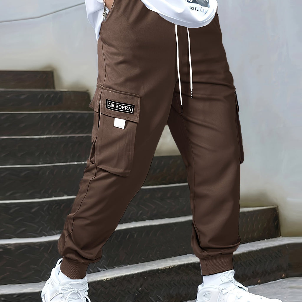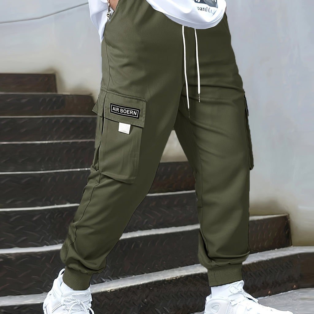 kkboxly Tech Wear Multi Pocket Harem Pants, Men's Casual Stretch Waist Drawstring Cargo Pants