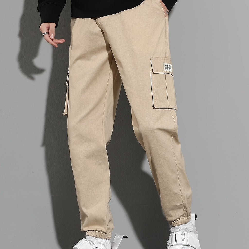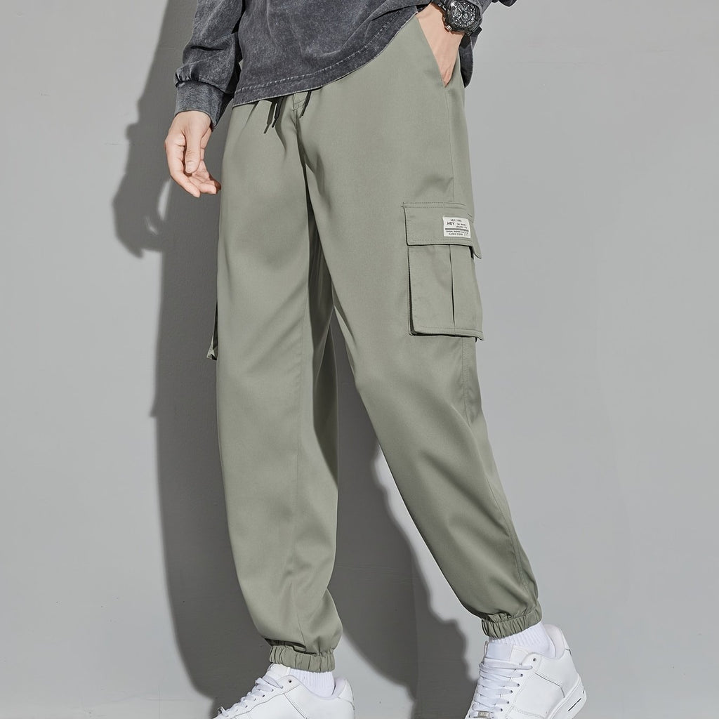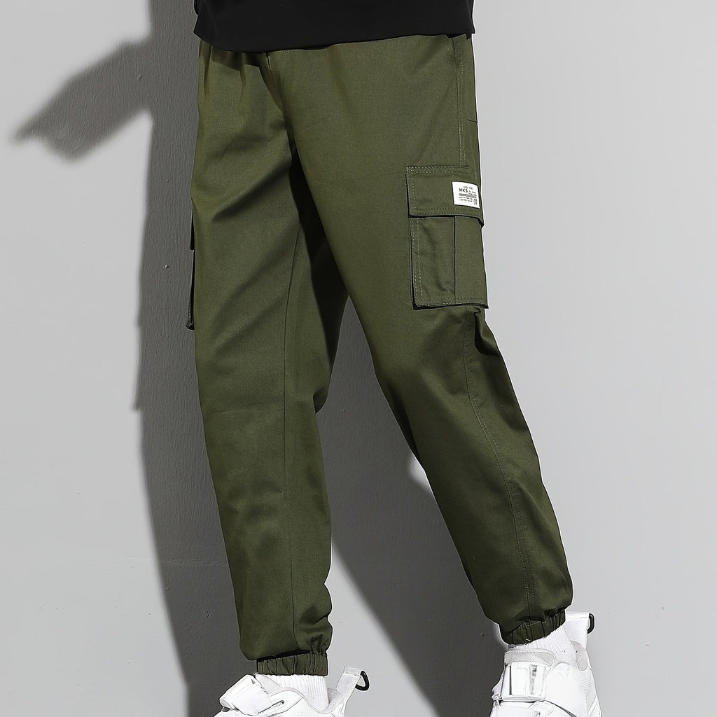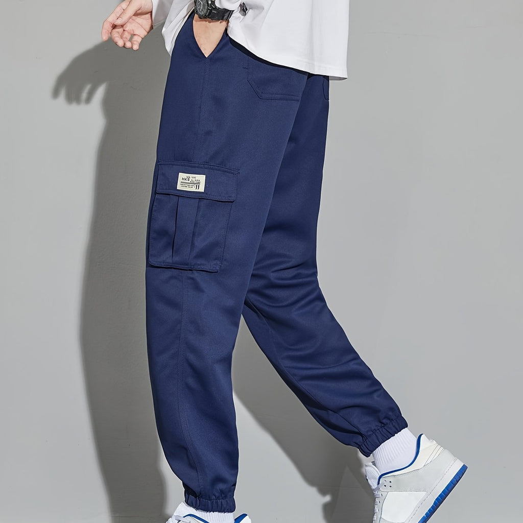 kkboxly Trendy Solid Cargo Pants, Men's Multi Flap Pocket Trousers, Loose Casual Outdoor Joggers Pants, Men's Work Pants Outdoors Streetwear Hip Hop Style