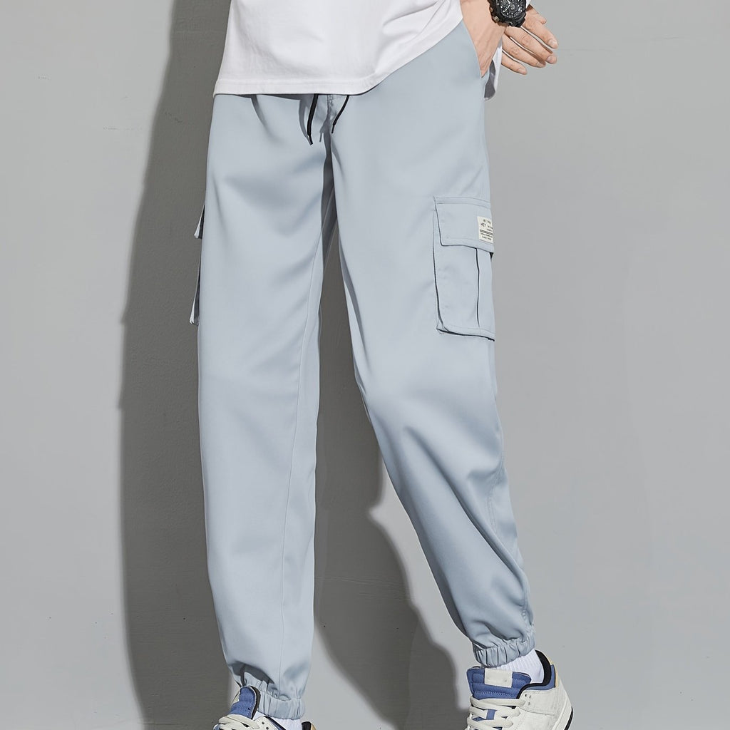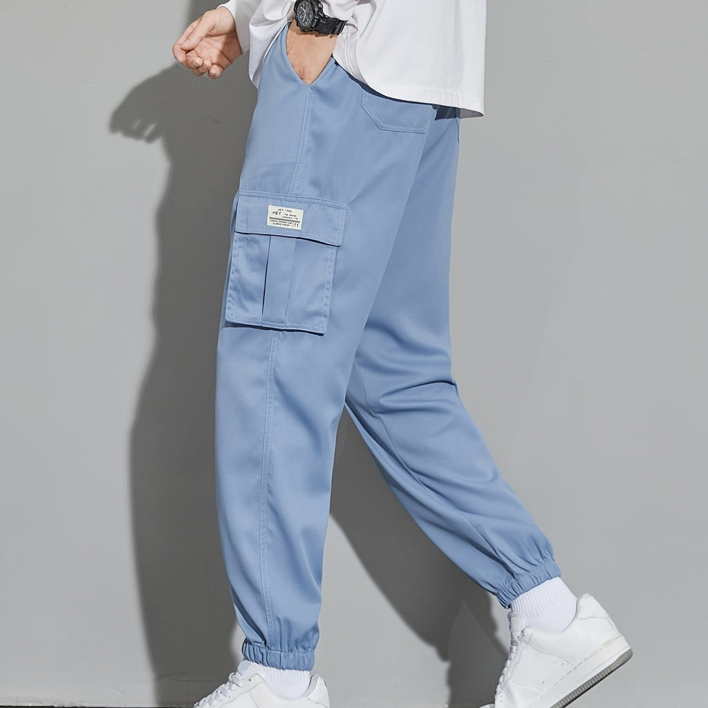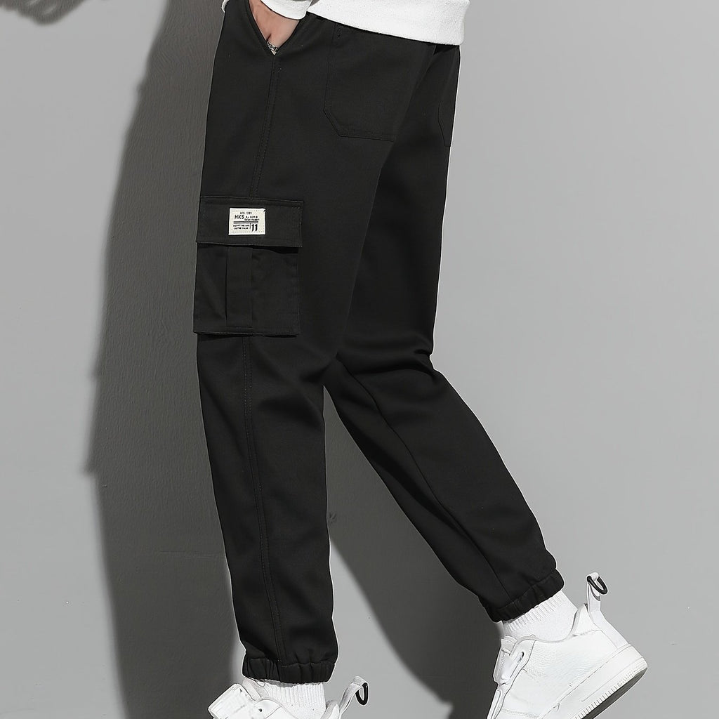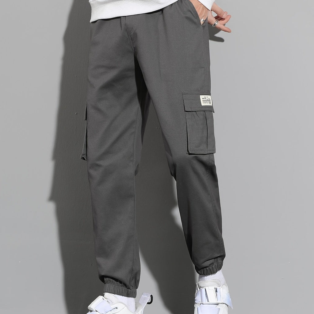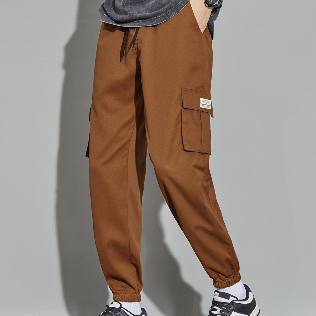 kkboxly Trendy Solid Cargo Pants, Men's Multi Flap Pocket Trousers, Loose Casual Outdoor Joggers Pants, Men's Work Pants Outdoors Streetwear Hip Hop Style
