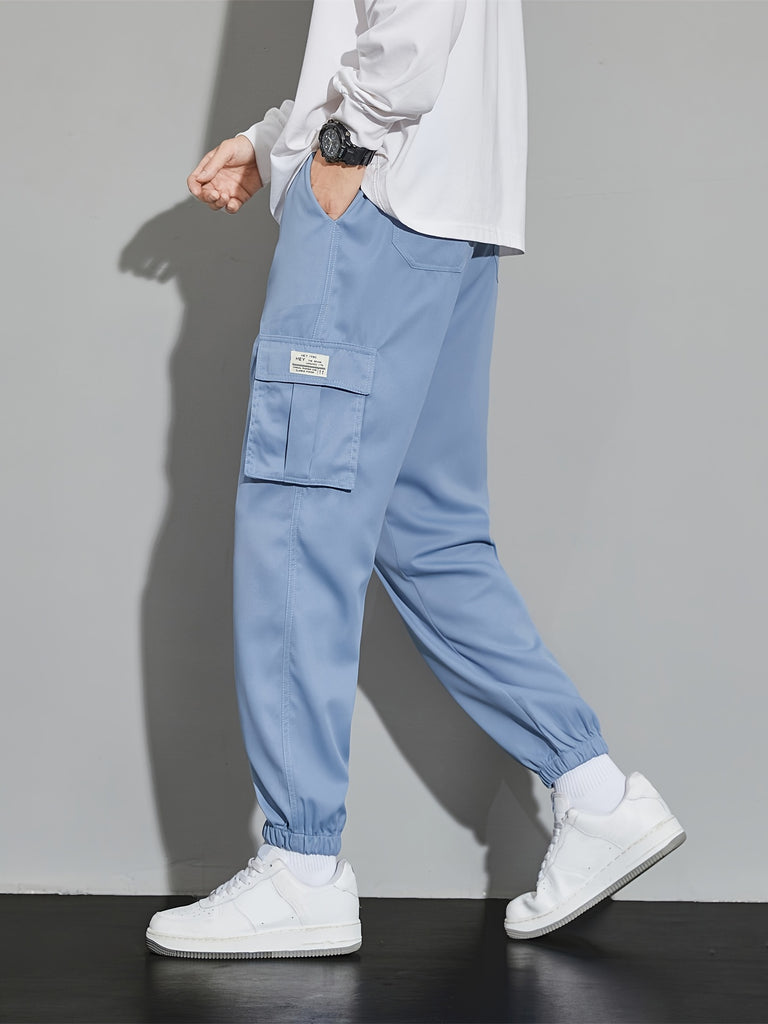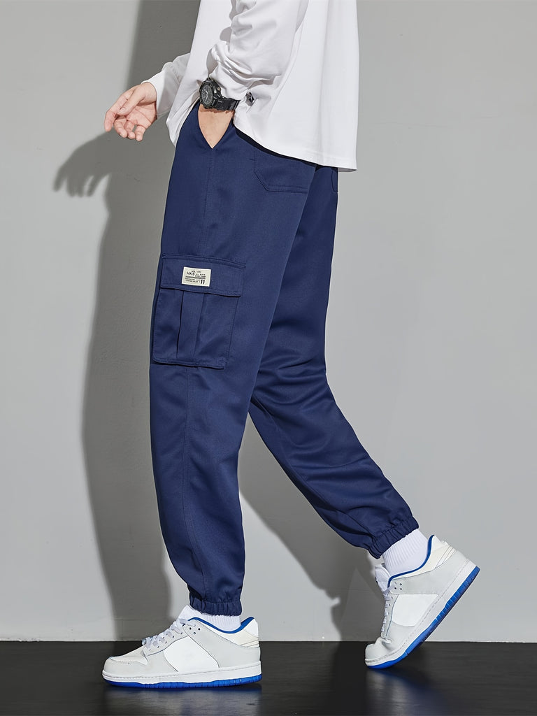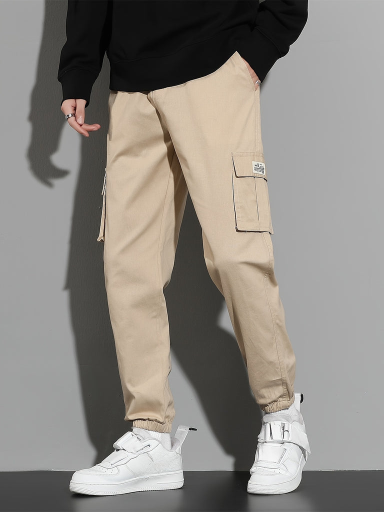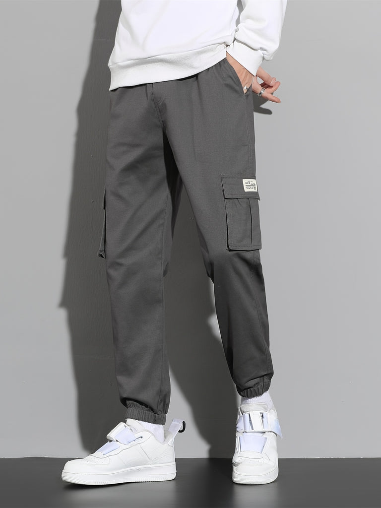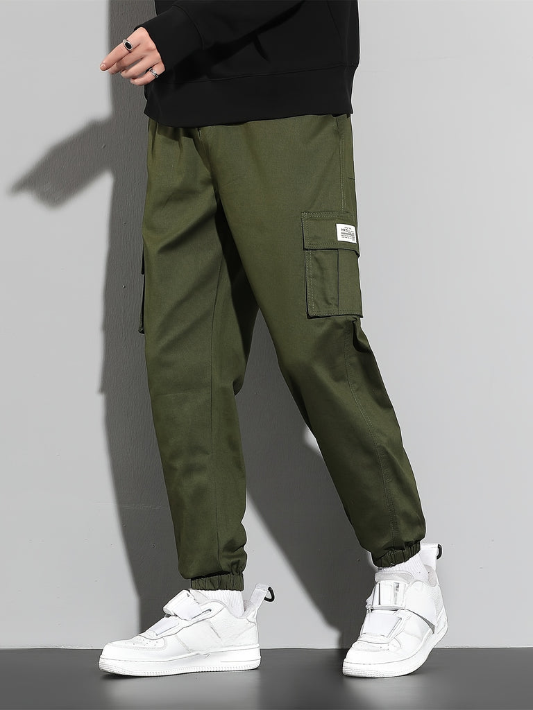 kkboxly Trendy Solid Cargo Pants, Men's Multi Flap Pocket Trousers, Loose Casual Outdoor Joggers Pants, Men's Work Pants Outdoors Streetwear Hip Hop Style