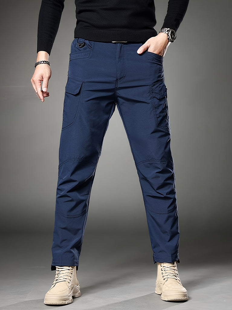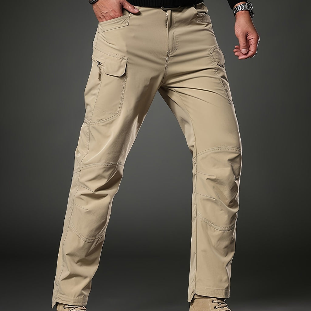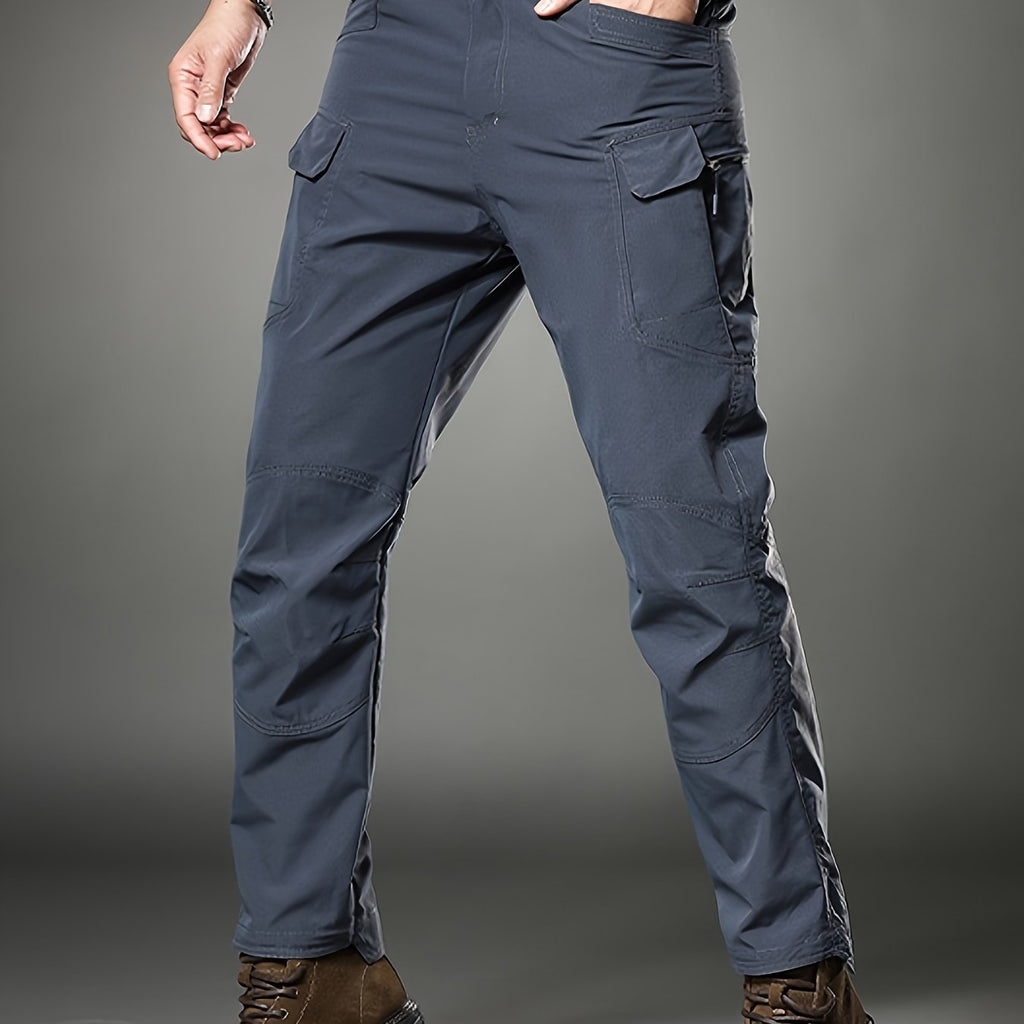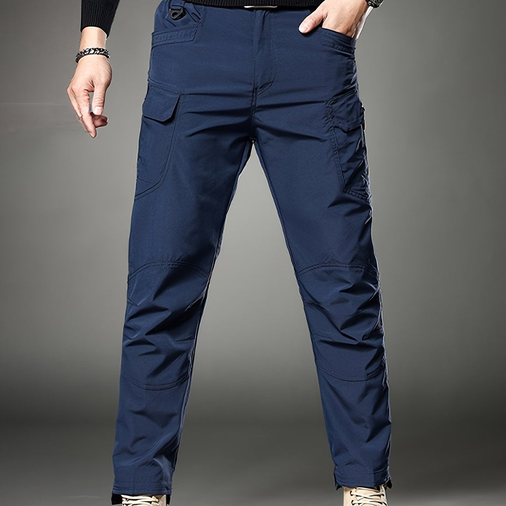 kkboxly Trendy Solid Cargo Pants, Men's Multi Flap Pocket Trousers, Slim Casual Outdoor Pants, Men's Work Pants Outdoors Streetwear