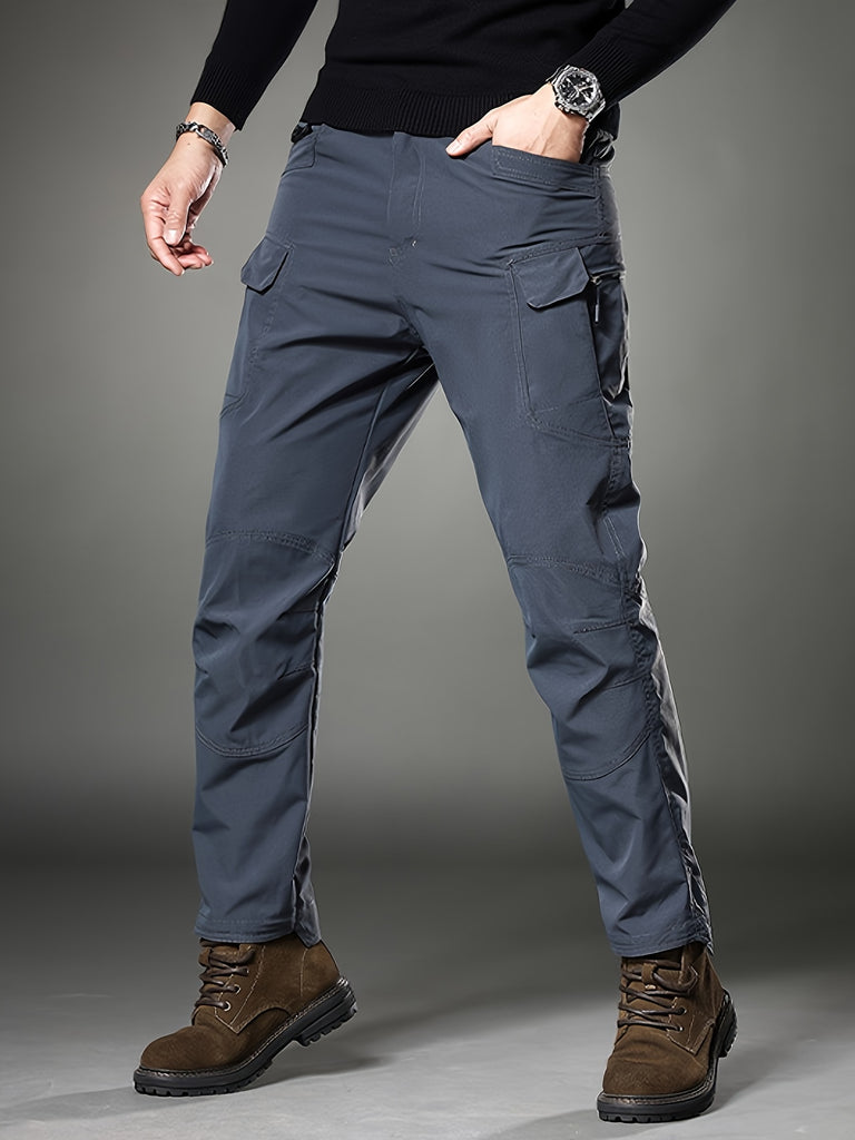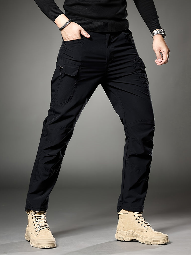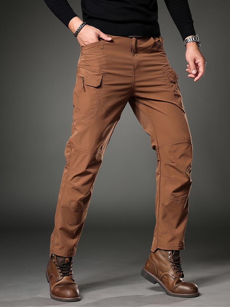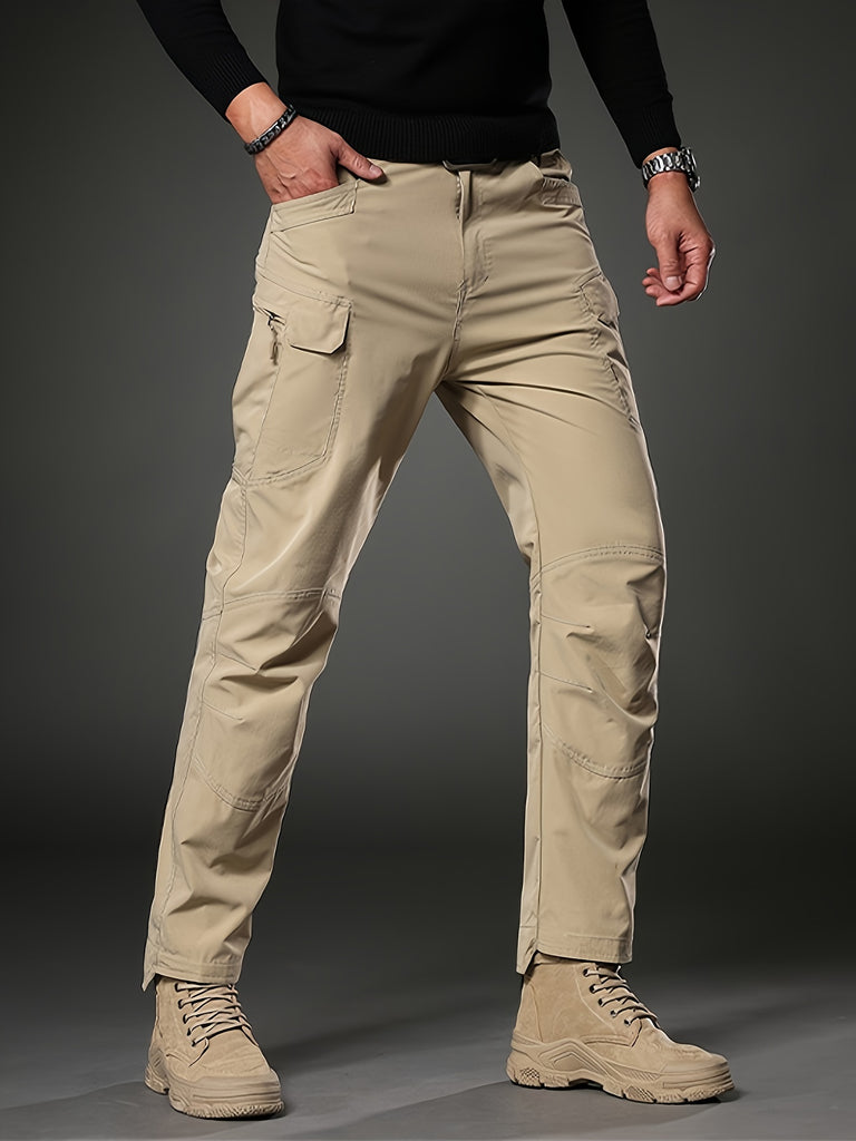 kkboxly Trendy Solid Cargo Pants, Men's Multi Flap Pocket Trousers, Slim Casual Outdoor Pants, Men's Work Pants Outdoors Streetwear