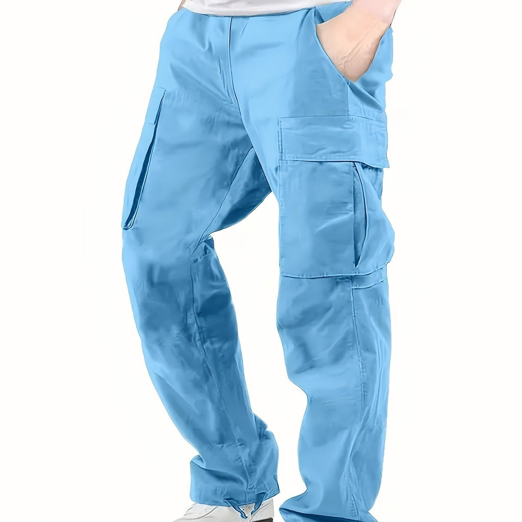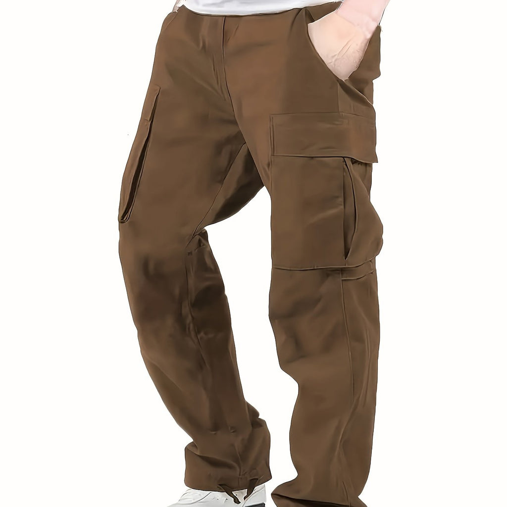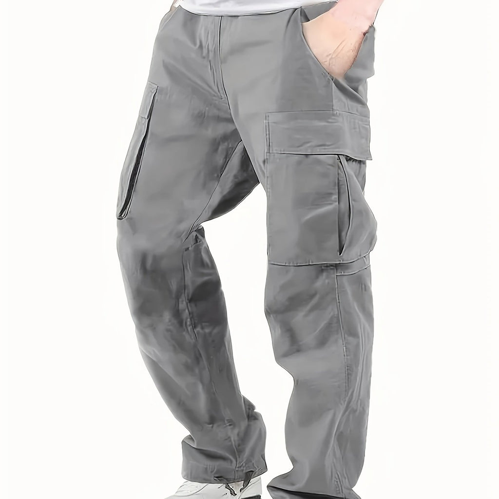 kkboxly Trendy Solid Cotton Cargo Pants, Men's Multi Flap Pocket Trousers, Loose Casual Outdoor Pants, Men's Work Pants Outdoors streetwear hip hop style