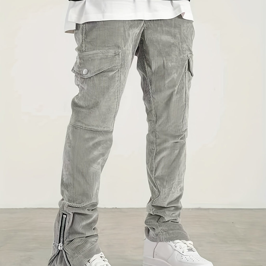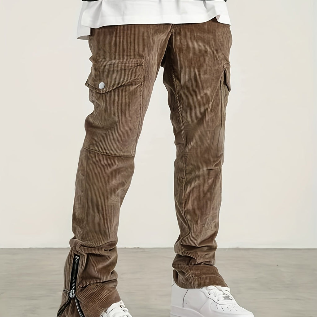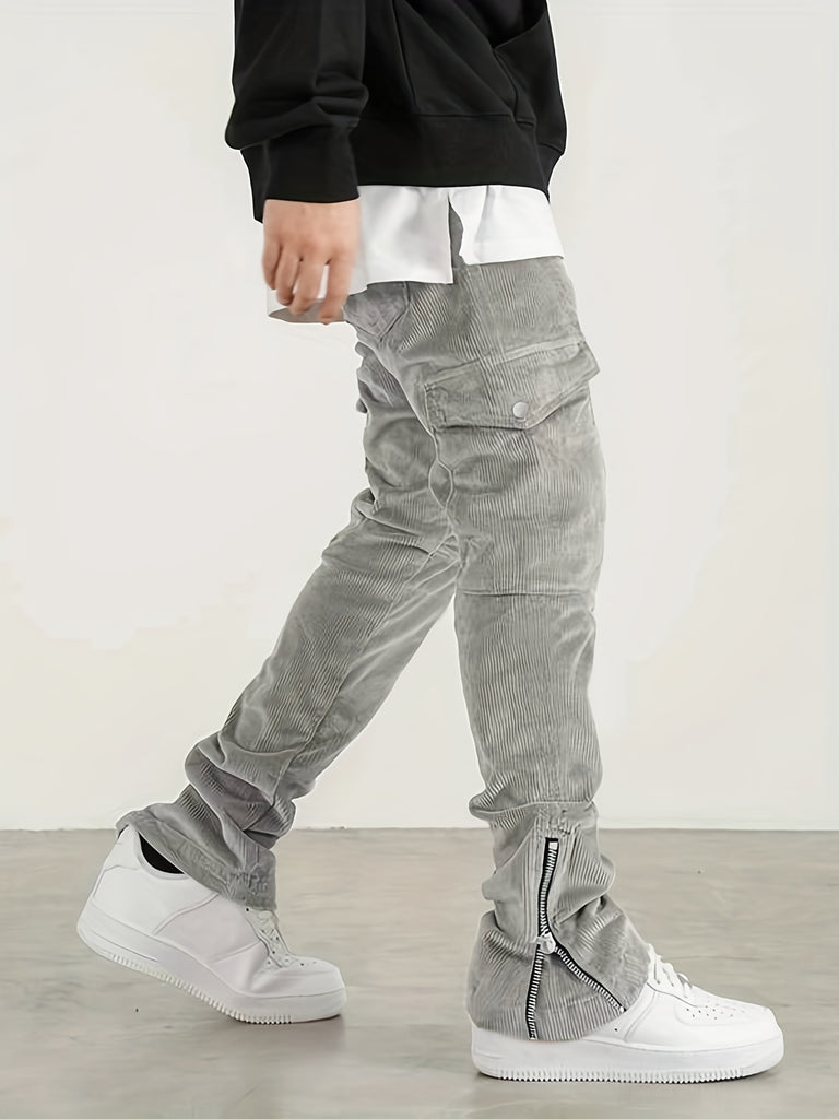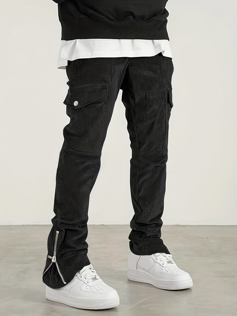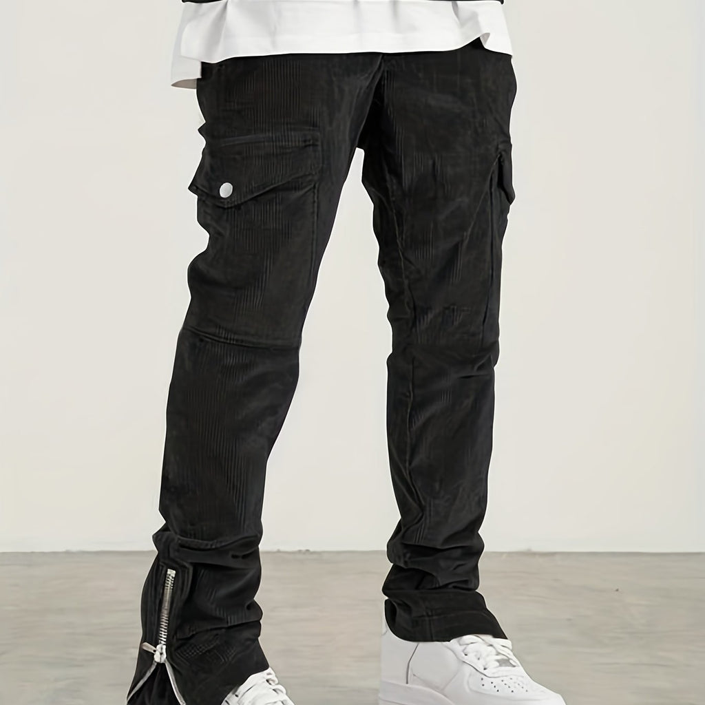 kkboxly Trendy Zipper Slit Bottom Cargo Pants, Men's Solid Multi Flap Pocket Trousers, Casual Outdoor Pants, Men's Work Pants Outdoors Streetwear Hiphop Style