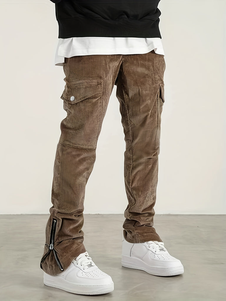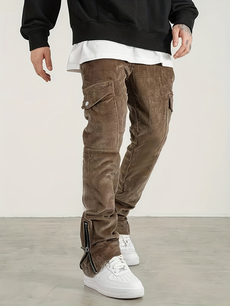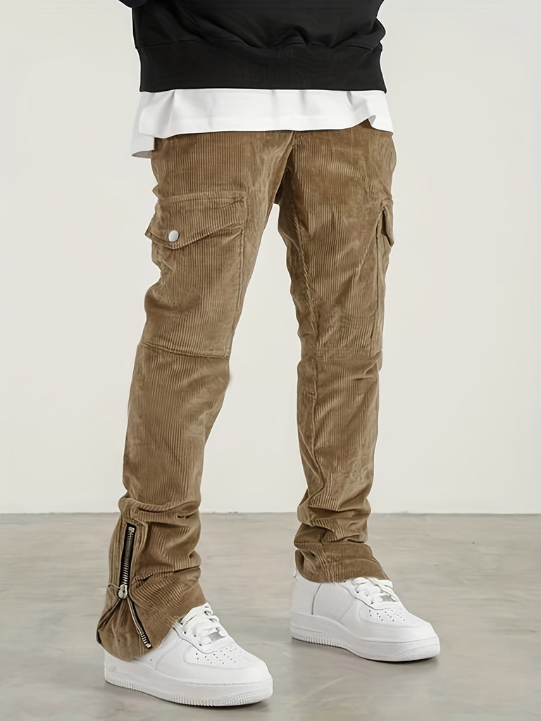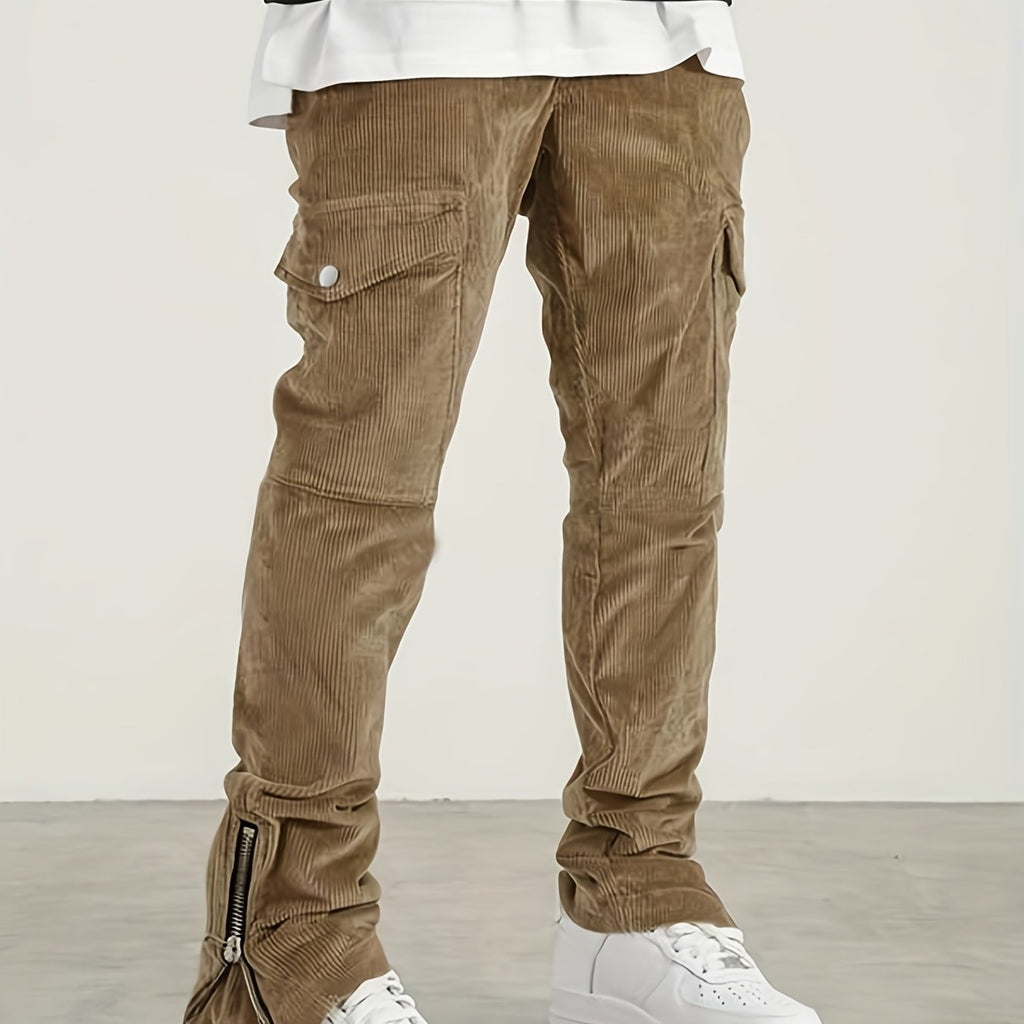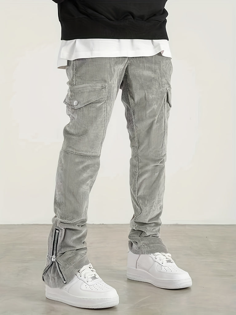kkboxly Trendy Zipper Slit Bottom Cargo Pants, Men's Solid Multi Flap Pocket Trousers, Casual Outdoor Pants, Men's Work Pants Outdoors Streetwear Hiphop Style