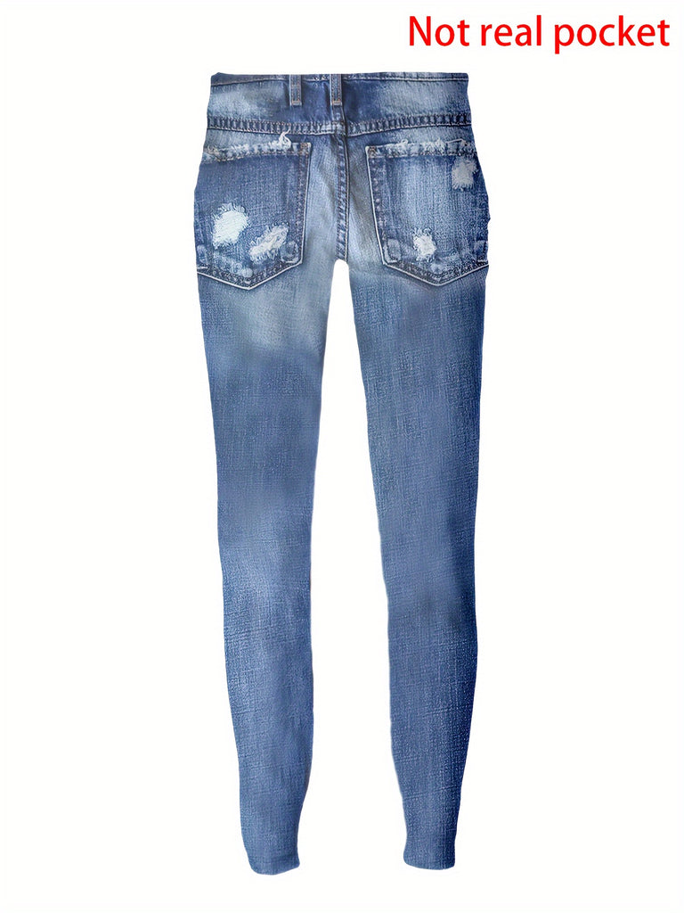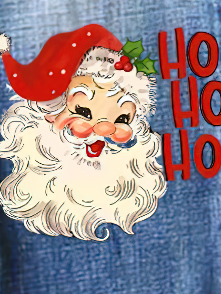 Santa Claus Graphic Ripped Effect Leggings Faux Denim print Pants Girls Kids Clothes Gift Halloween Christmas