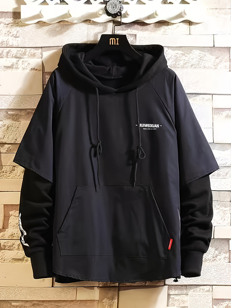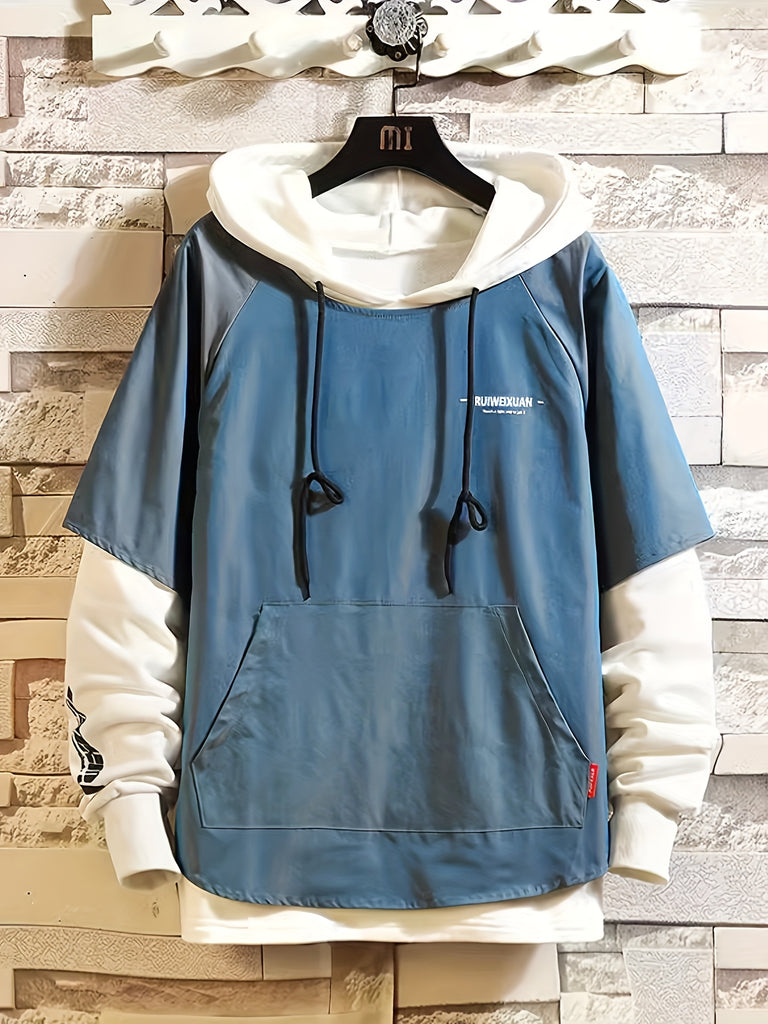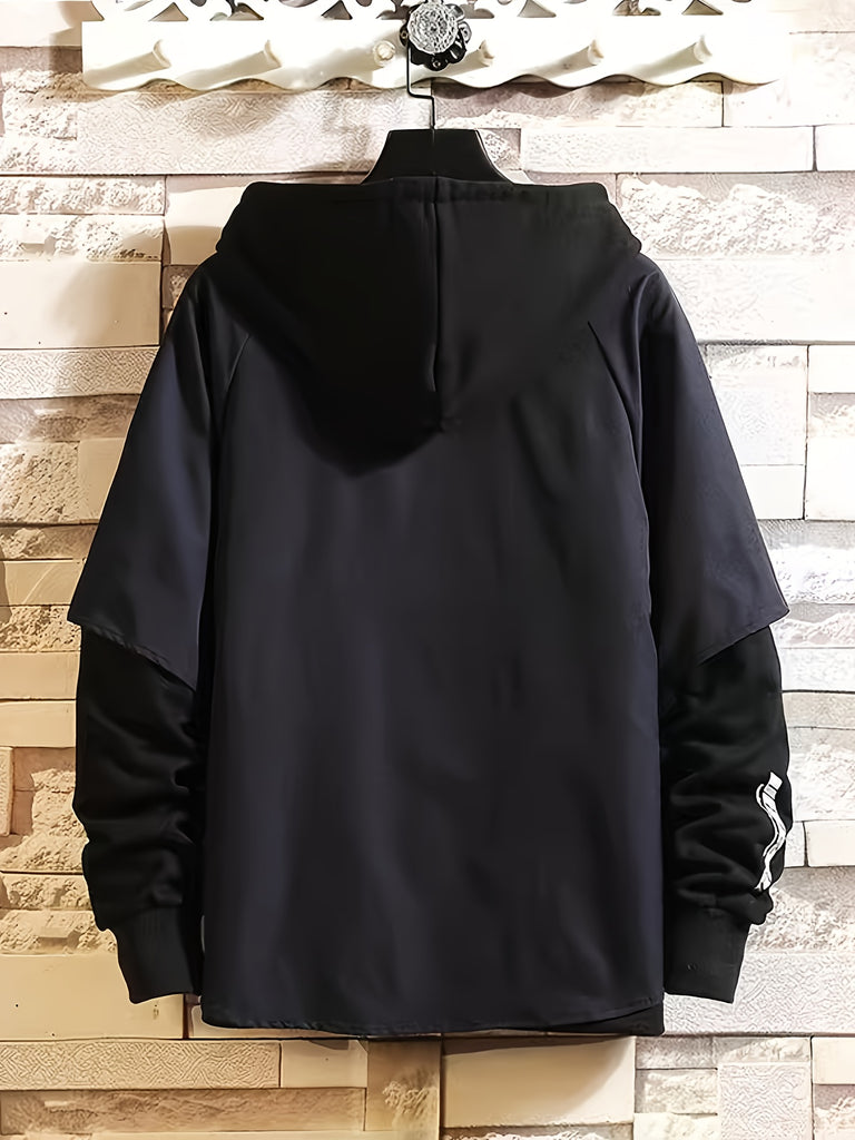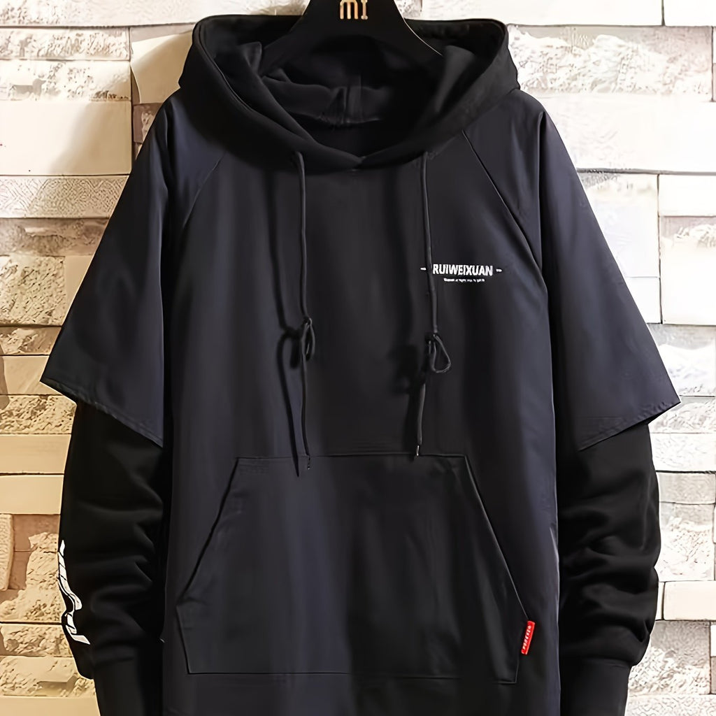 kkboxly Fake 2-piece Cool Hoodies For Men, Men's Casual Hooded Sweatshirt Streetwear For Winter Fall, As Gifts