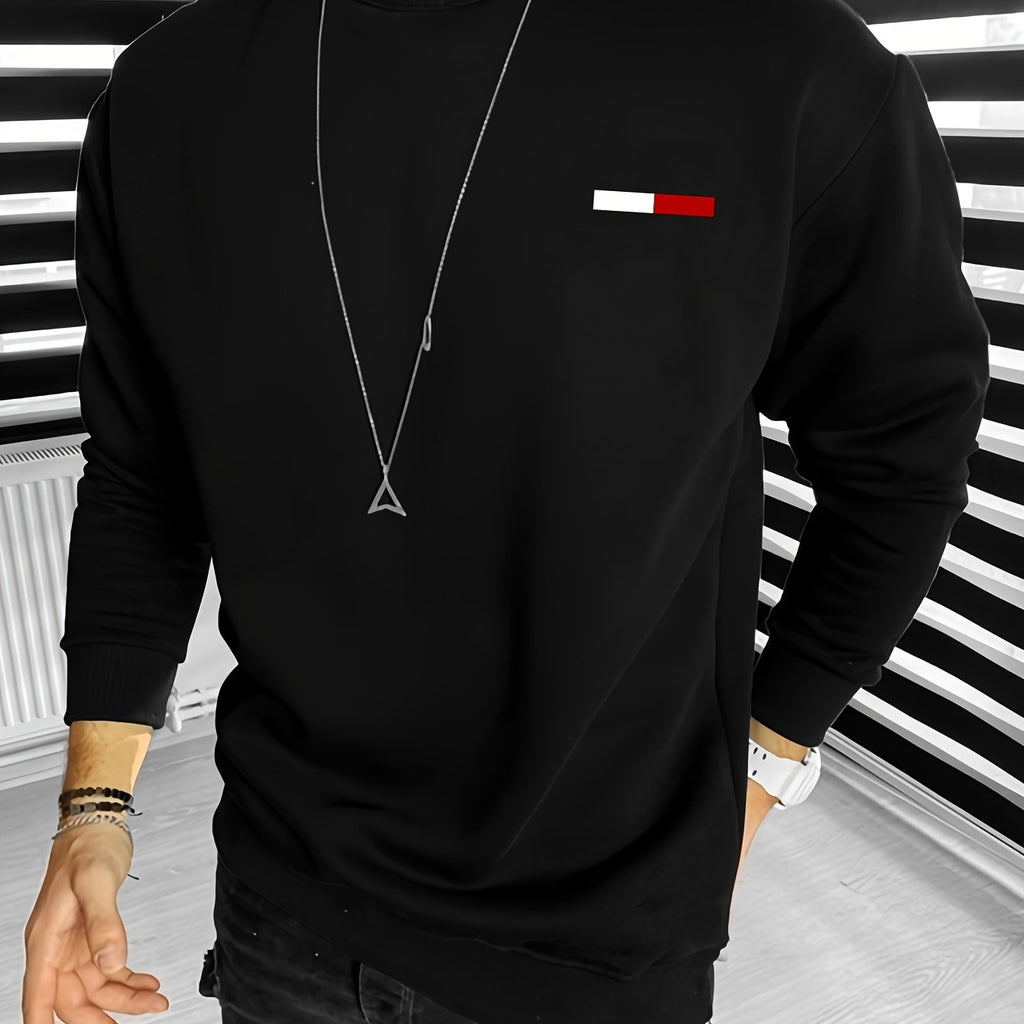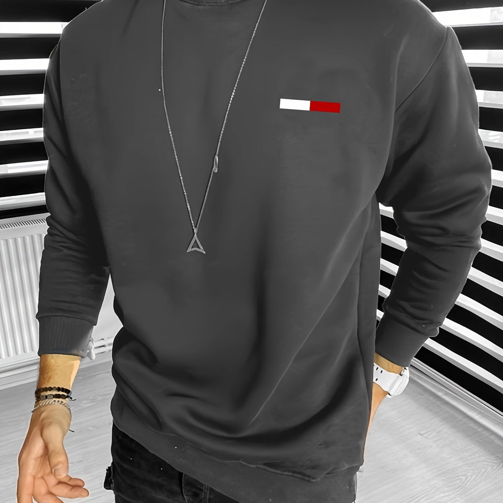 kkboxly Men's Fashionable Casual Geometric Print, Round Neck Pullover Long Sleeve Sweatshirt,Suitable For Outdoor Sports,For Autumn And Spring,As Gifts
