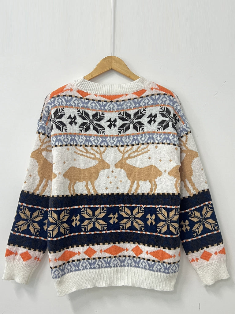 Elegant Christmas Reindeer Crew Neck Sweater for Women - Cozy Polyester, Long Sleeve, Perfect Holiday Gift