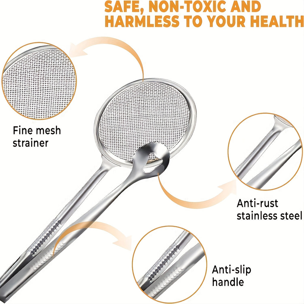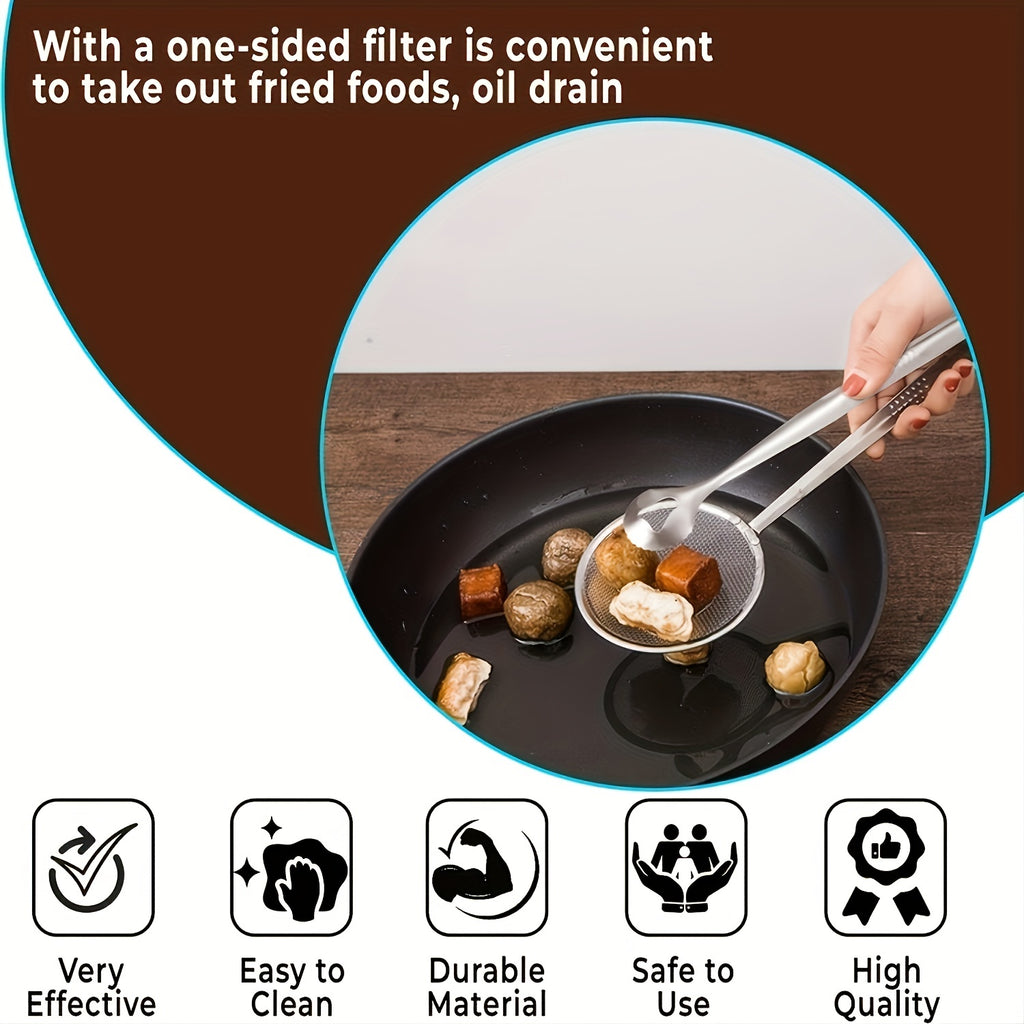 kkboxly 1pc Multifunctional Stainless Steel Tongs - Easy to Clean, Frying Tools for Excess Grease Removal, Kitchen Essentials for Apartment and School