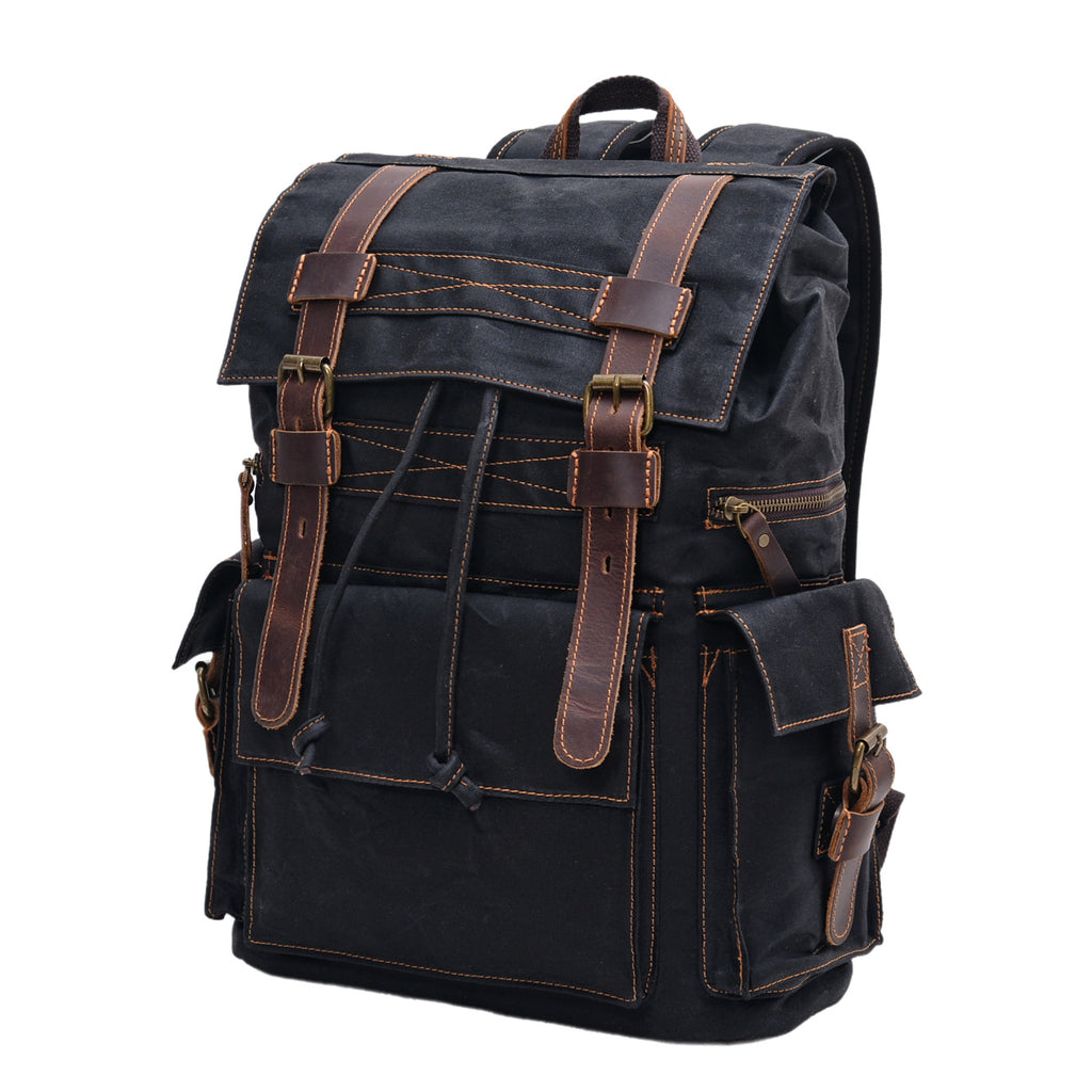 KKBOXLY 2025 Retro backpack waterproof oil wax canvas backpack men and women travel computer bag outdoor leisure leather mountaineering bag