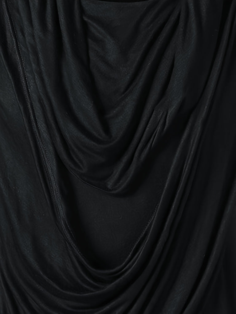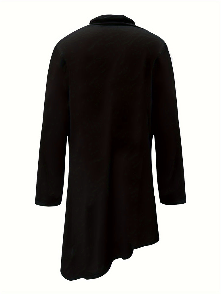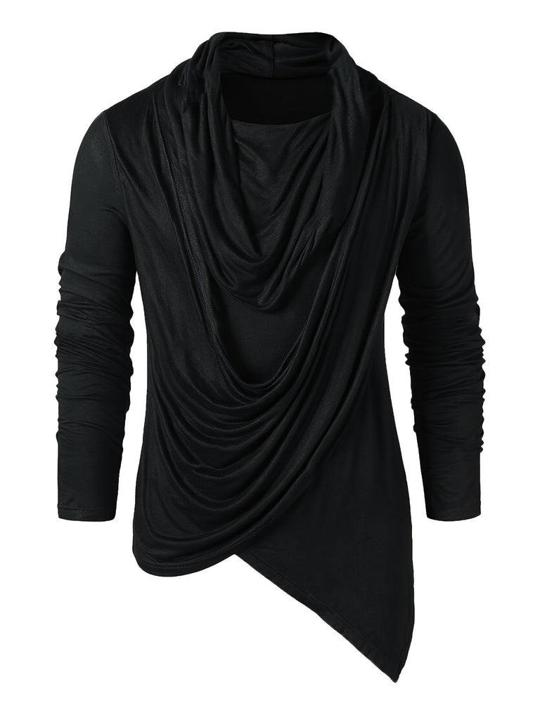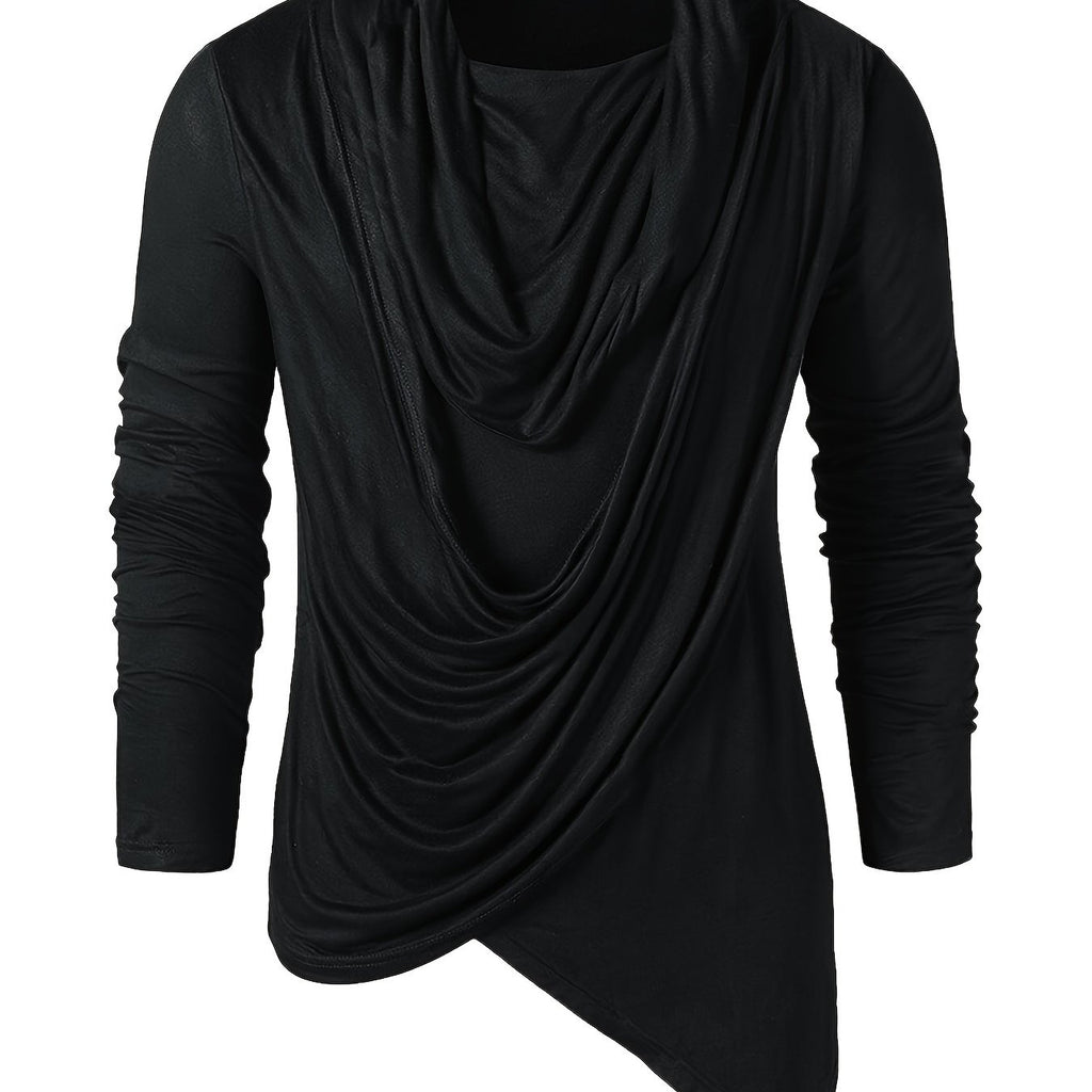 kkboxly Plus Size Men's Solid Fashion Piles Of Collar T-shirt Asymmetric Long Sleeve Tees Street Tops , Men's Clothing