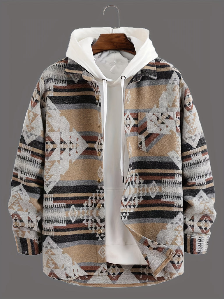 kkboxly Novelty Pattern Stripe Print Jackets For Men ,Snap Button Up Lapel Stylish Coat Jackets For Men
