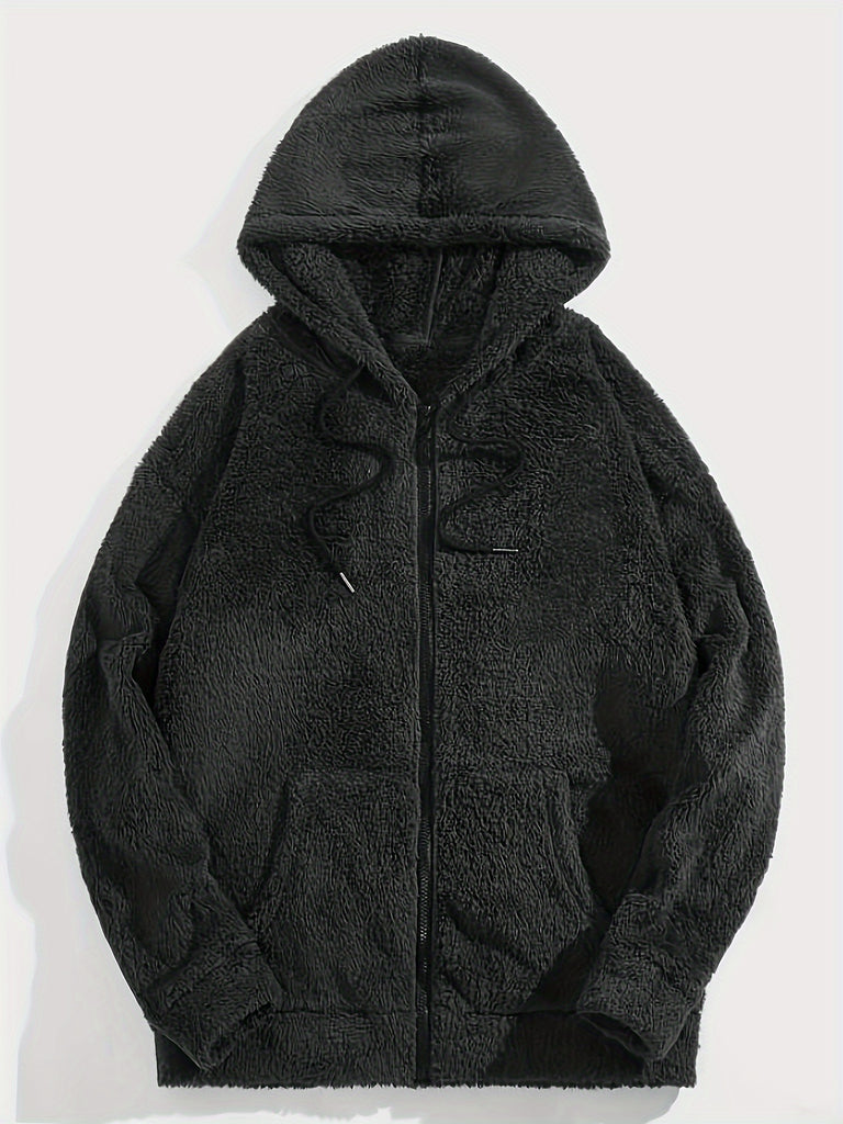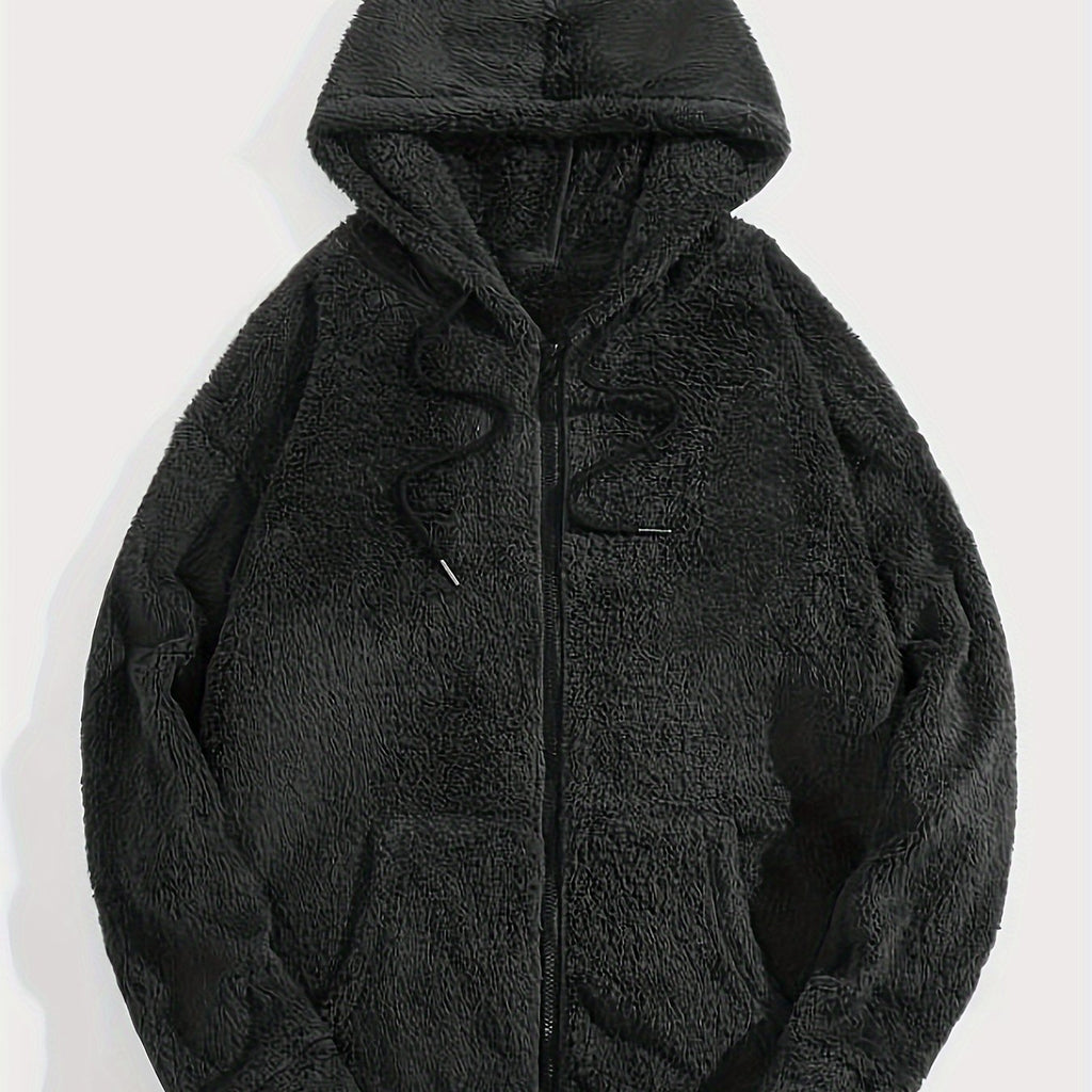 kkboxly Plus Size, Men's Hooded Jacket, Solid Fleece Warm Coat For Fall Winter, Men's Clothing