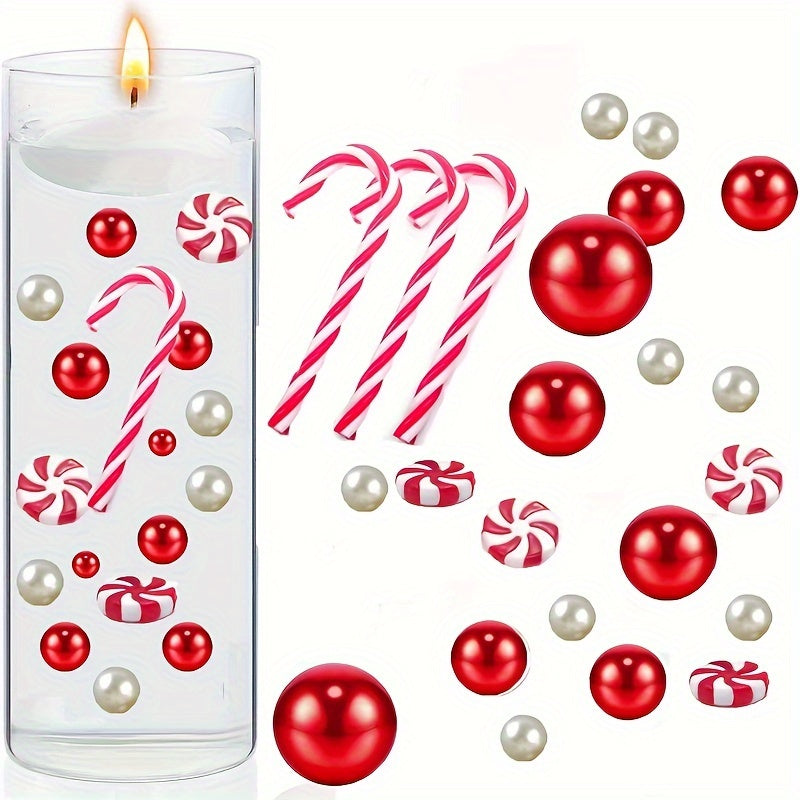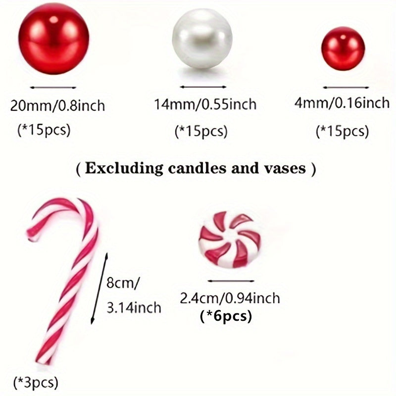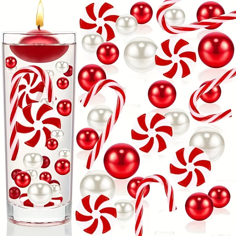 1 Pack of 54Pcs Red Crutches Christmas Vase Filler Beads with White Floating Pearls for Weddings, Birthday Parties, and Holiday Decorations