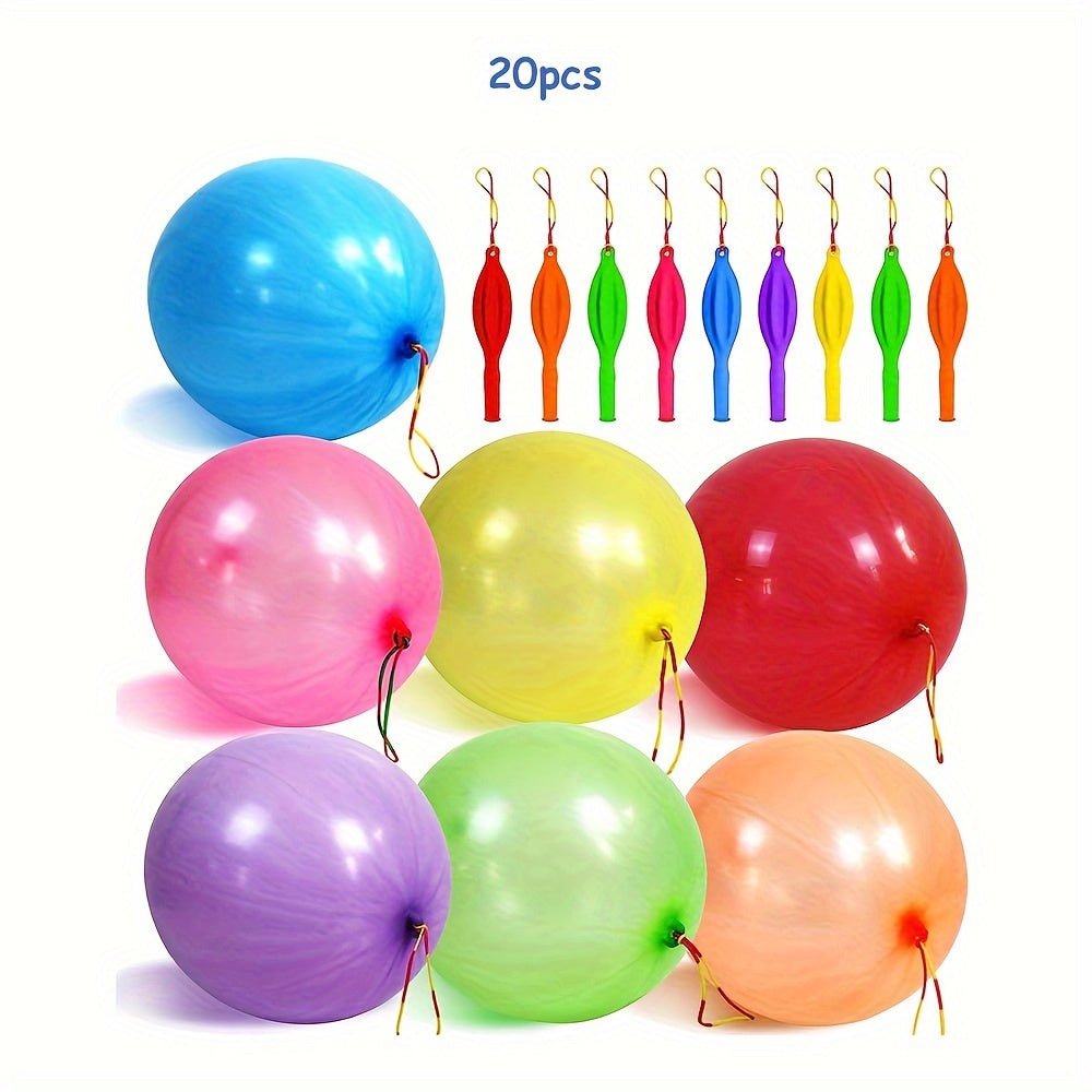 10/20pcs Heavy Duty Punch Balloons, Party Favors, Bounce Balloons With Rubber Band Handle For Birthday Party Decor, Holiday Accessory, Party Pack, Outdoor Toys, Christmas, Halloween, Thanksgiving Decor