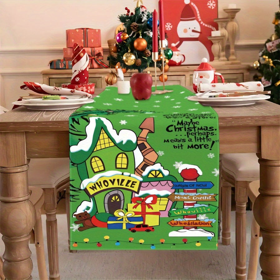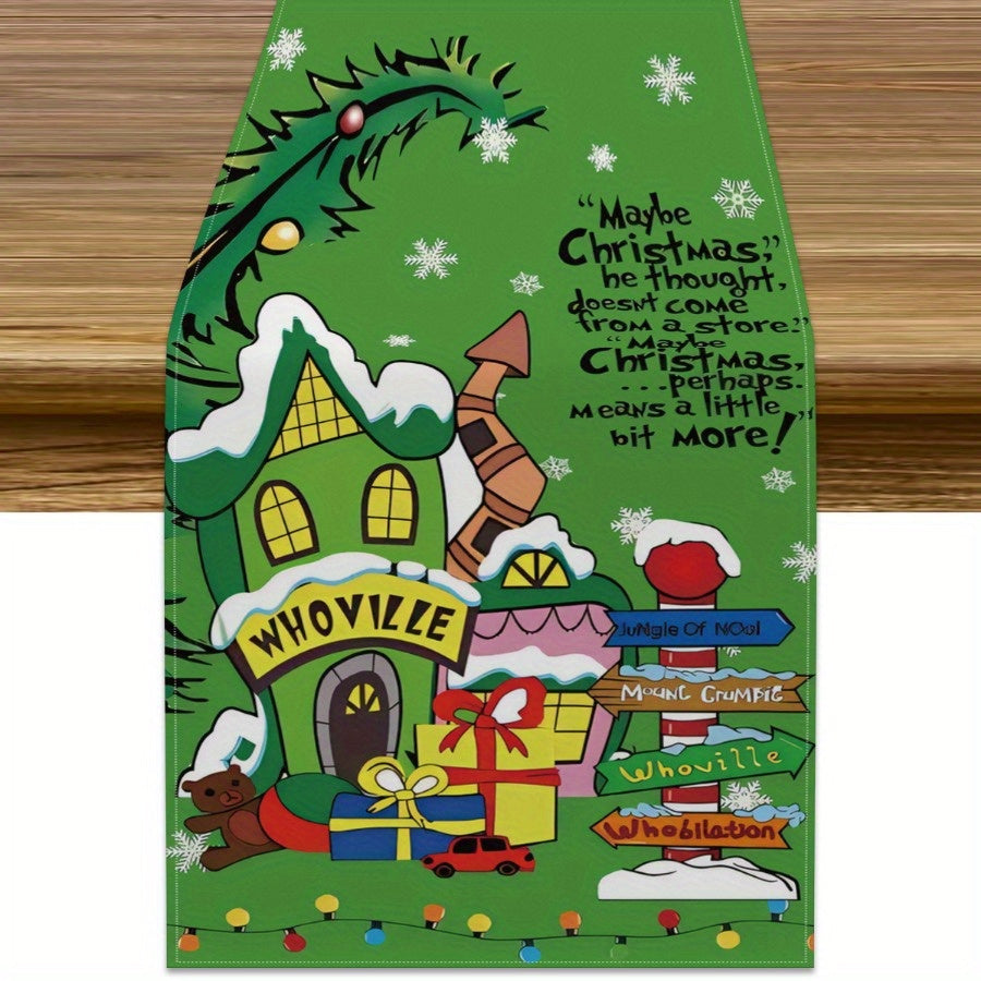 100% Polyester Rectangular Christmas Whoville Knit Fabric Table Runner - Durable & Easy Care Indoor Outdoor Holiday Party Dining Decor