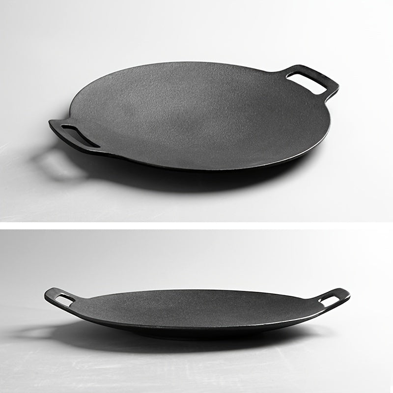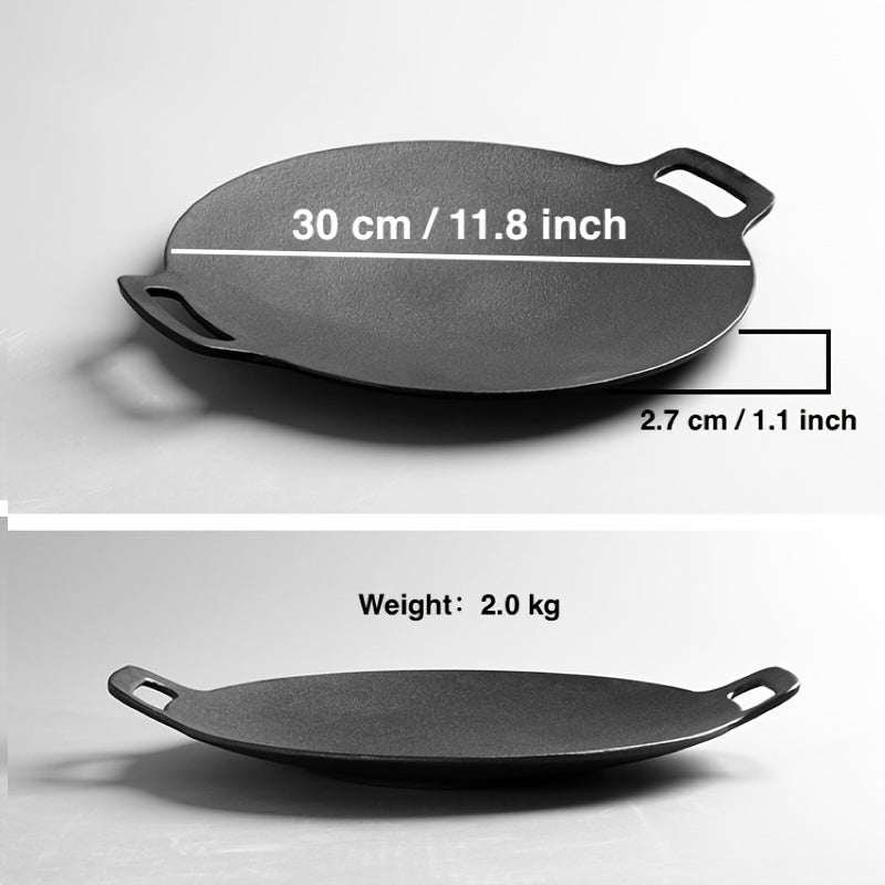 kkboxly 12" Thick Cast Iron Griddle for Korean BBQ, Teppanyaki & Baking - Indoor/Outdoor Use