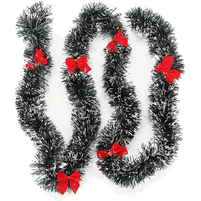 kkboxly 1pc, 6.56ft Christmas Tinsel Garland Artificial Christmas Garland Xmas Metallic Twist Hanging Garland Fireplace Mantel Wreath Decor For Staircase Railing Indoor Outdoor Ornaments Christmas Party Decor Supplies