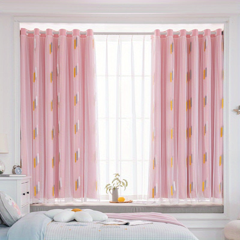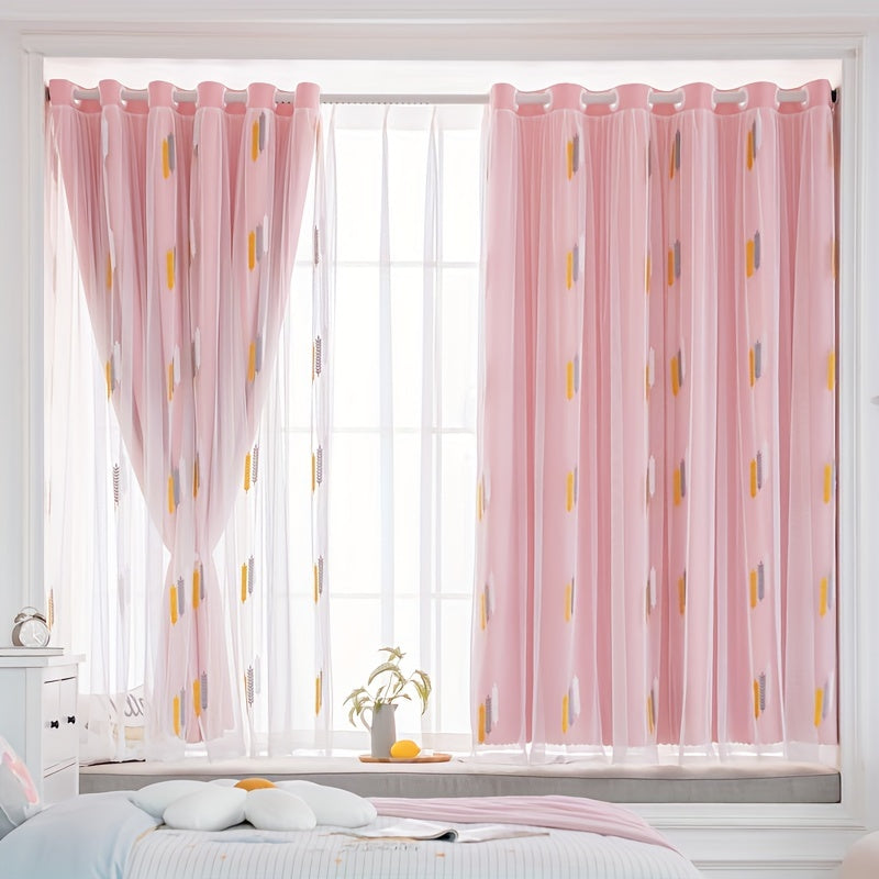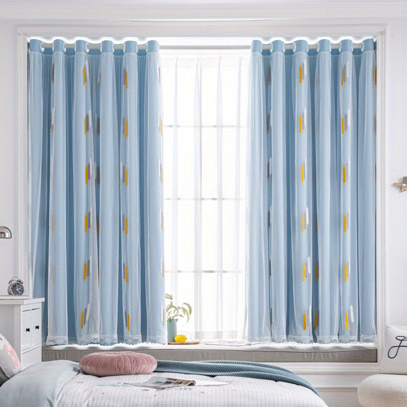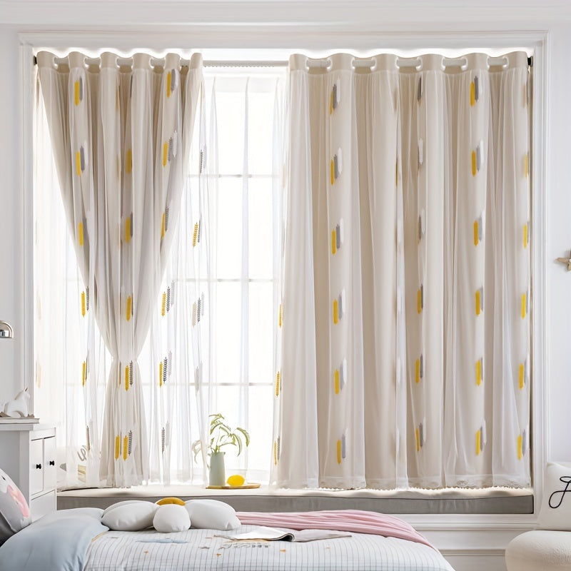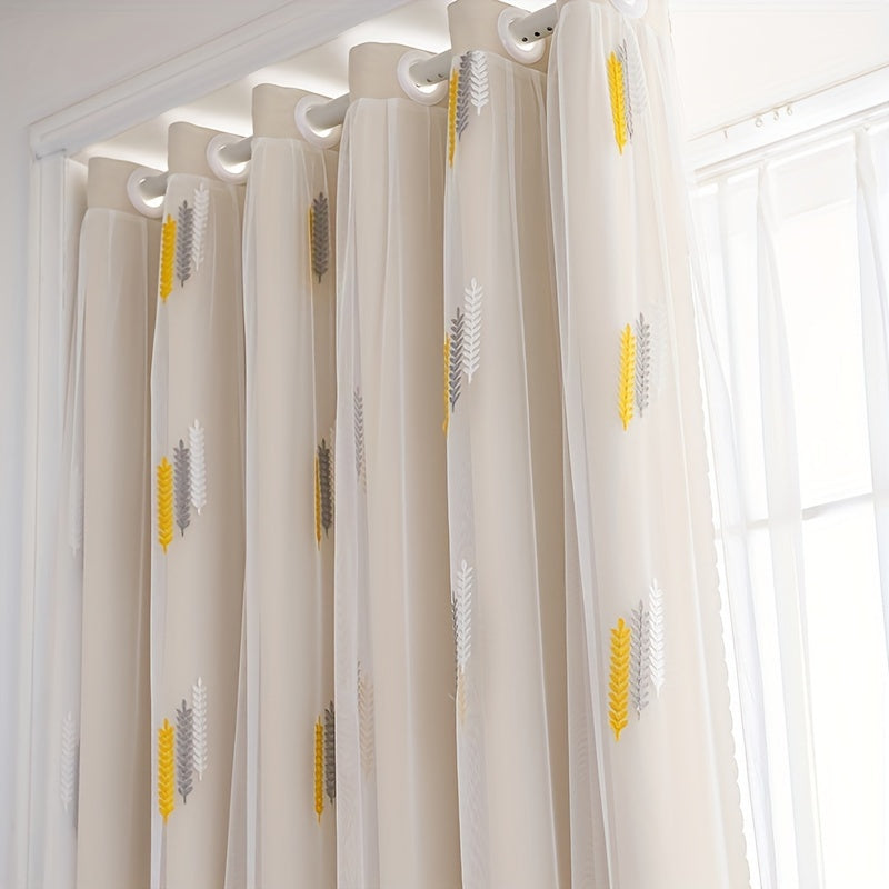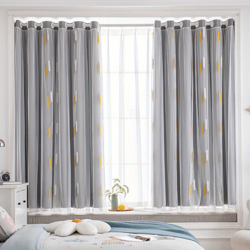kkboxly 1pc Exquisite Wheat Pattern Embroidered Double-Layer Curtain - Grey Window Treatment for Bedroom, Office, Kitchen, Living Room, Study - Home Decor with Elegant Design, Thermal Insulation, and Light Blocking Features
