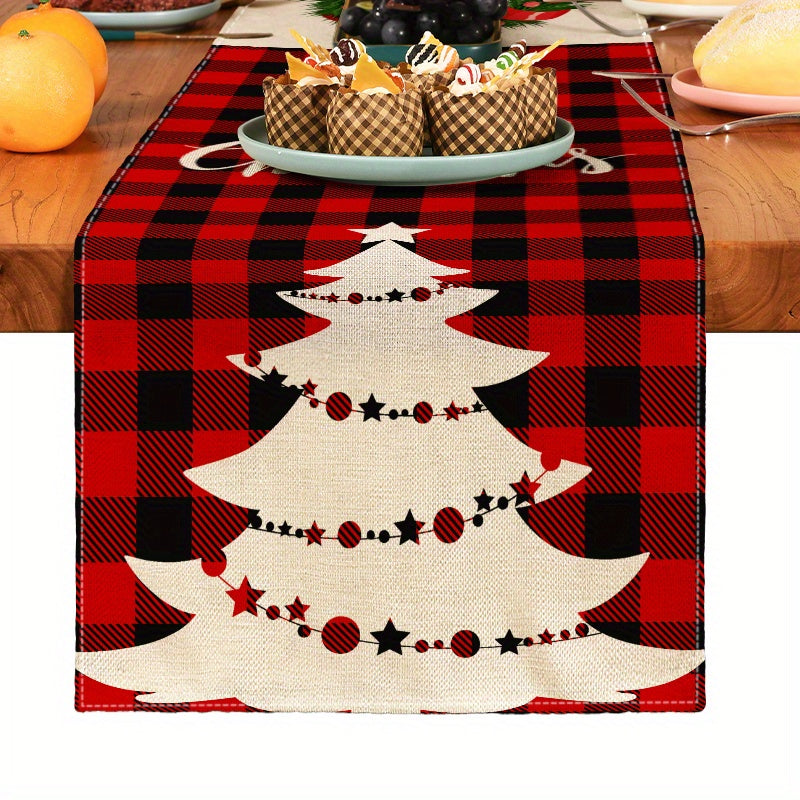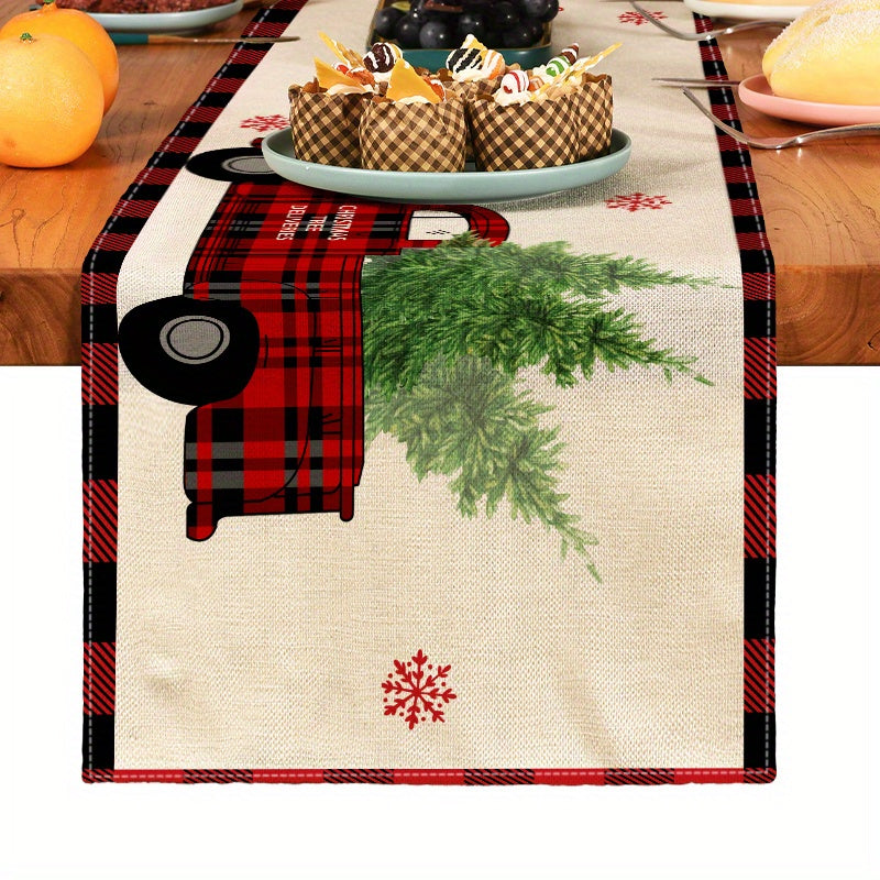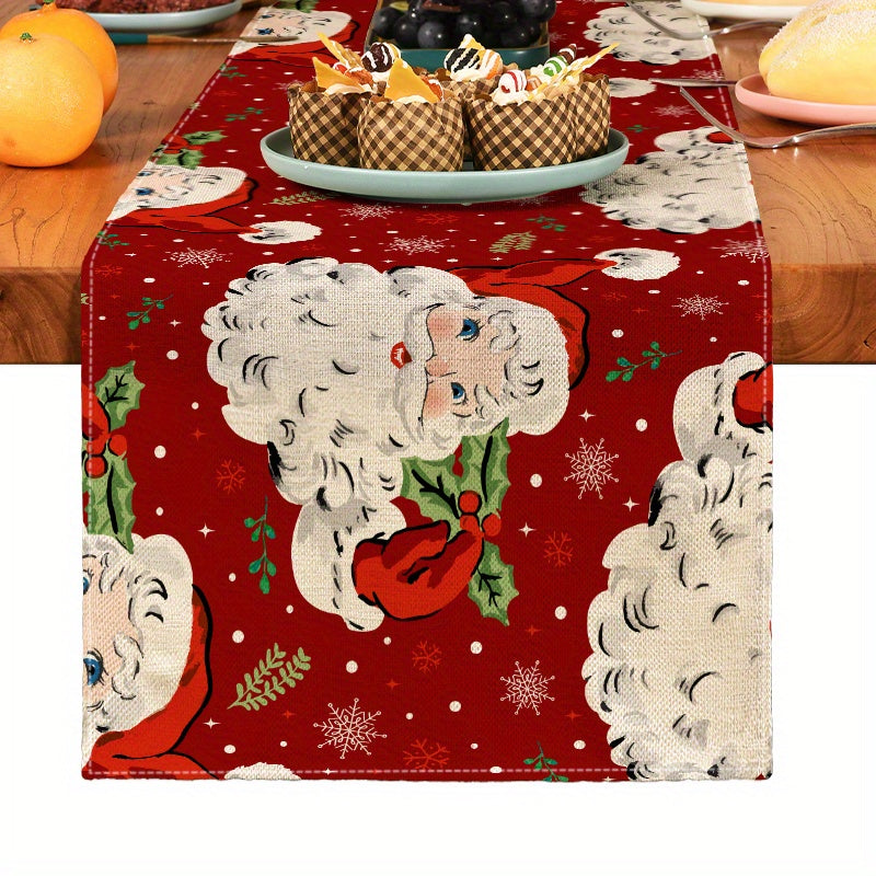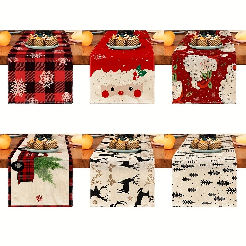1pc Festive Christmas Linen Table Runner - Table Runners for Holiday Decor, Kitchen Dining Room Scene Decoration, Party Supplies, Gift Ideas, and Atmosphere Decoration