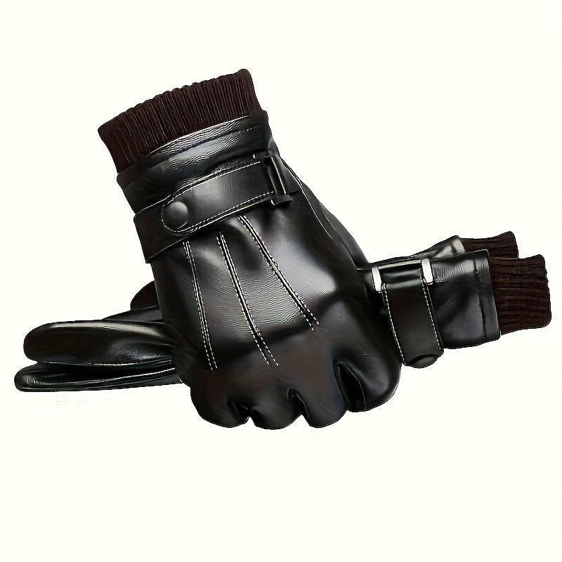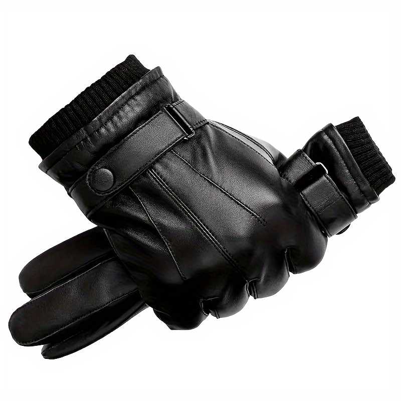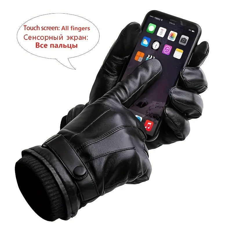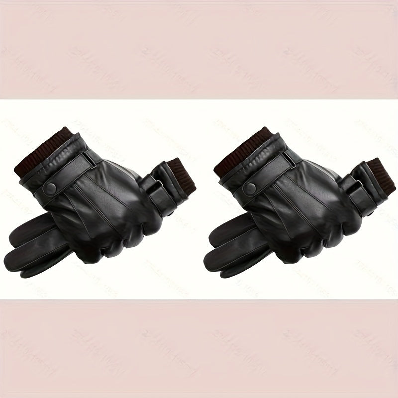 2-Pack of Warm & Touchscreen Men's Faux Leather Gloves for Winter Outdoor Driving & Cycling, Washable Non-Woven Material with Button Closure, Ideal Gift