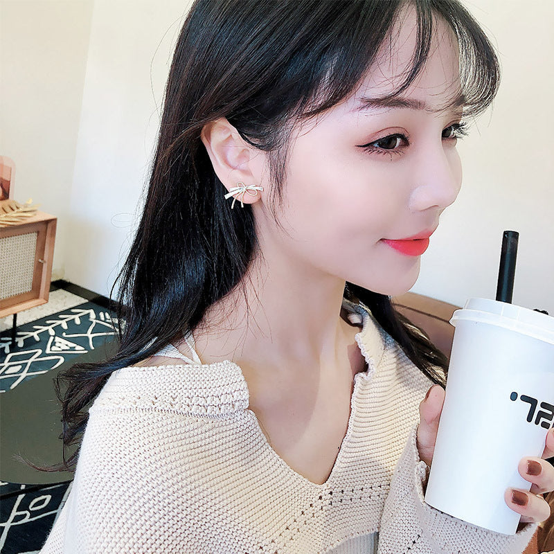 2025 Bow stud earrings femininity 2022 Japan and Korea trendy fashion super fairy earrings silver needle earrings manufacturers wholesale