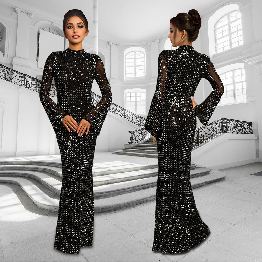 2025 C7186 Popular and Fashion Women's Clothing Slim Sexy Long Sleeve Hot Diamond Dress New