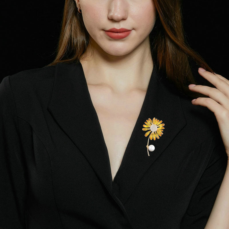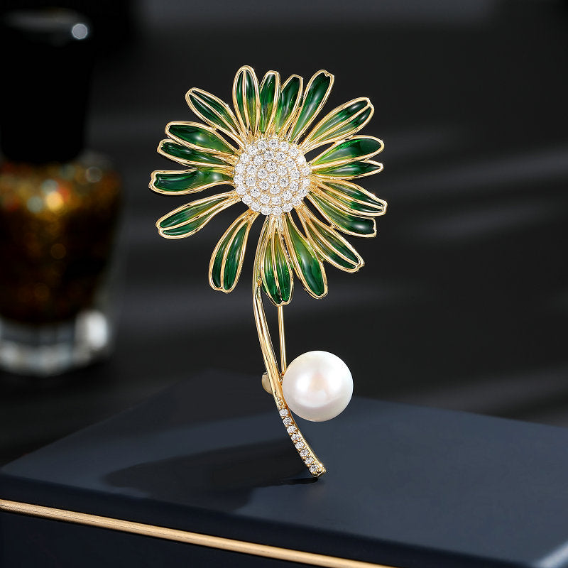 2025 Drip cardigan anti-light silk scarf buckle fixed clothes accessories high-end zircon pearl sunflower flower brooch