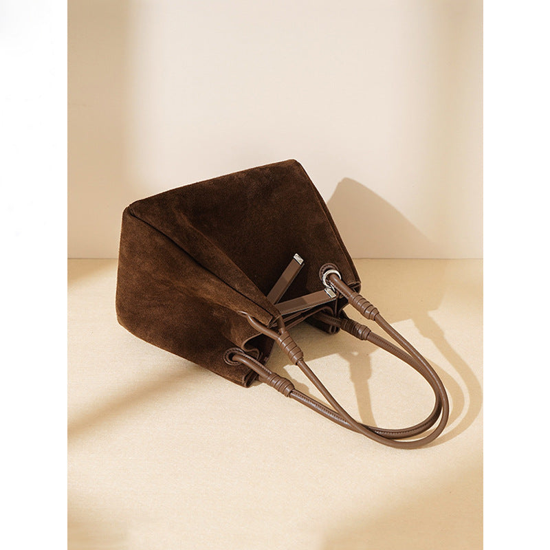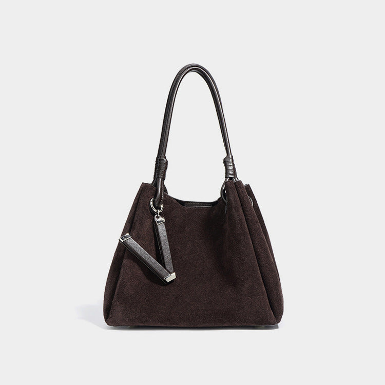 2025 High texture matte portable tote bag popular new two-layer anti-velvet cowhide retro fashion shoulder messenger bag