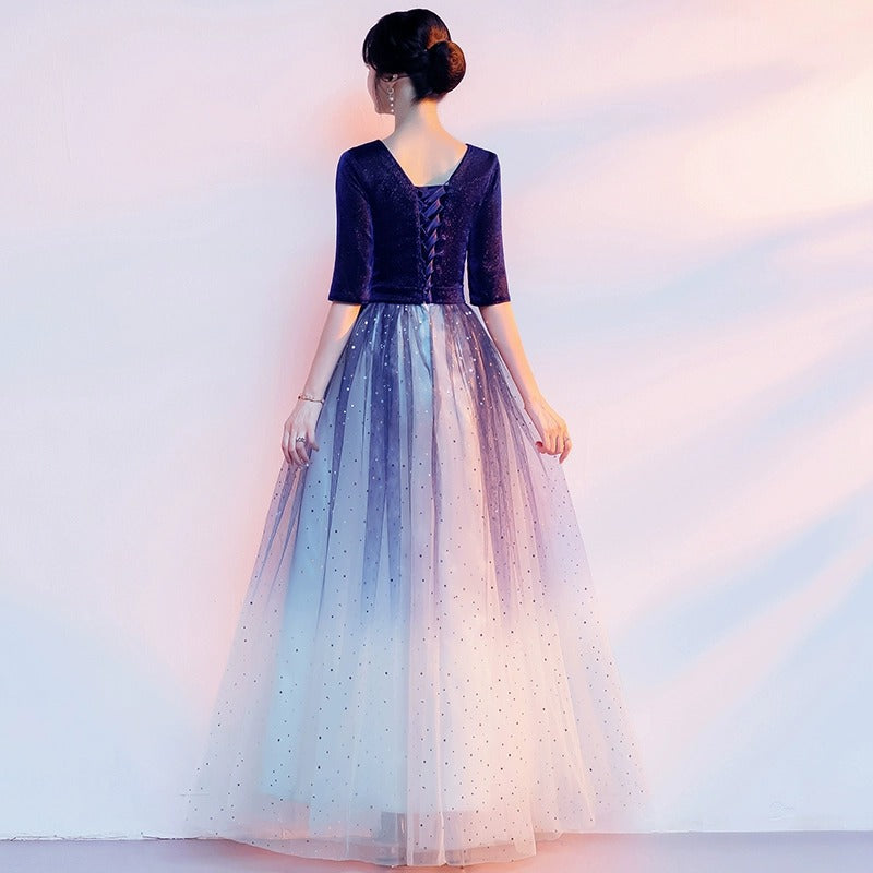 2025 Starry sky evening dress female high-end chorus performance suit blue host student vocal art test adult solo