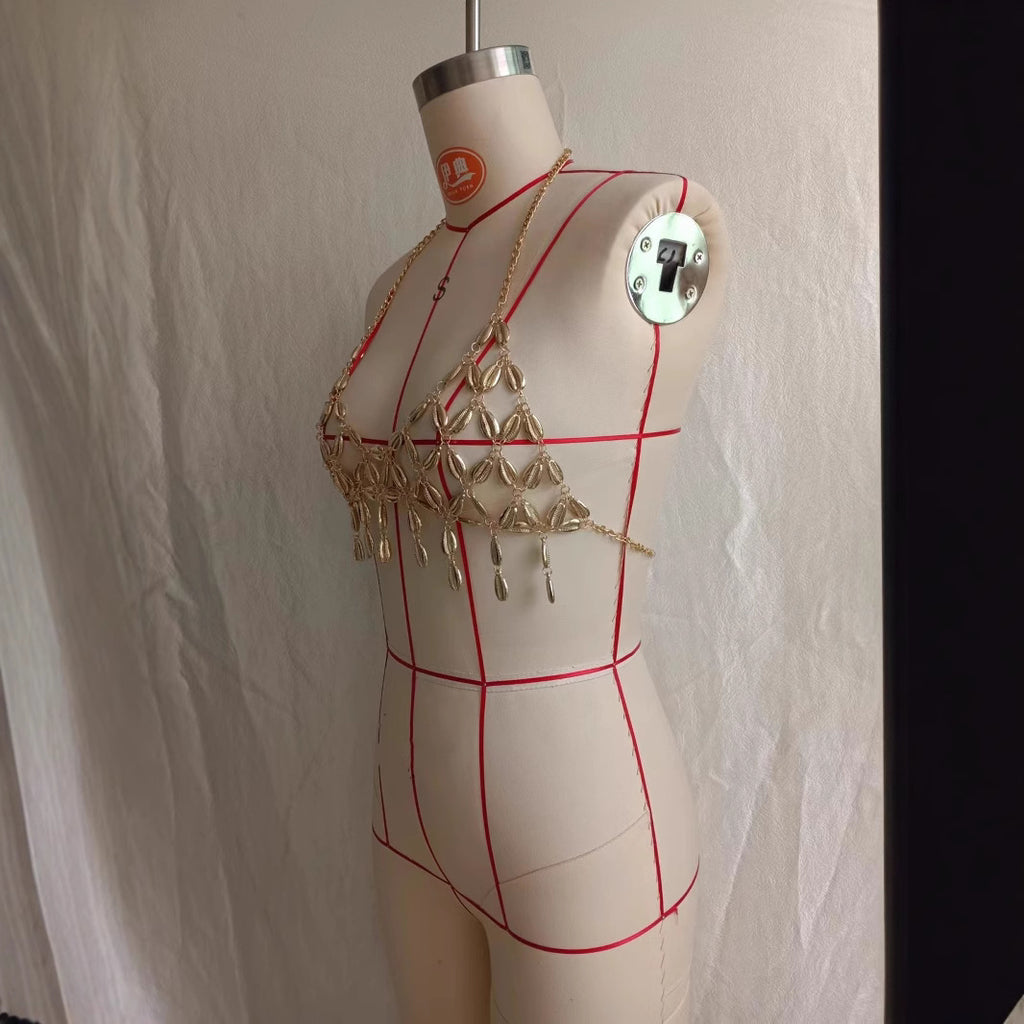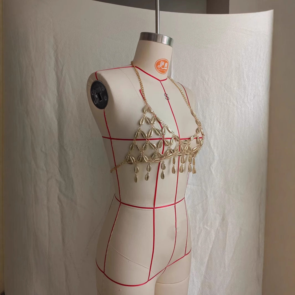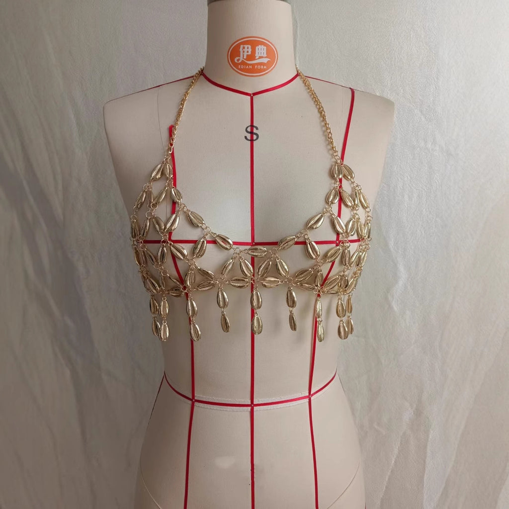 2025 Zq4052 2025 New hot-selling gold melon seed pendant metal chain splicing neck top small vest body chain