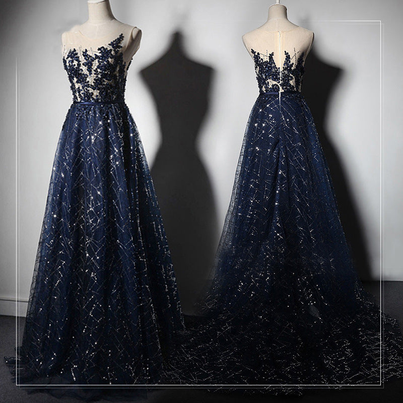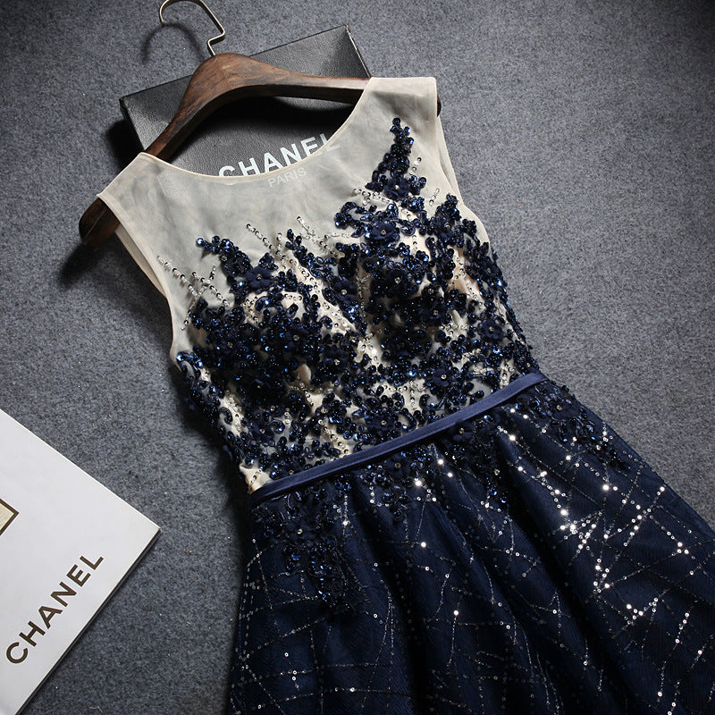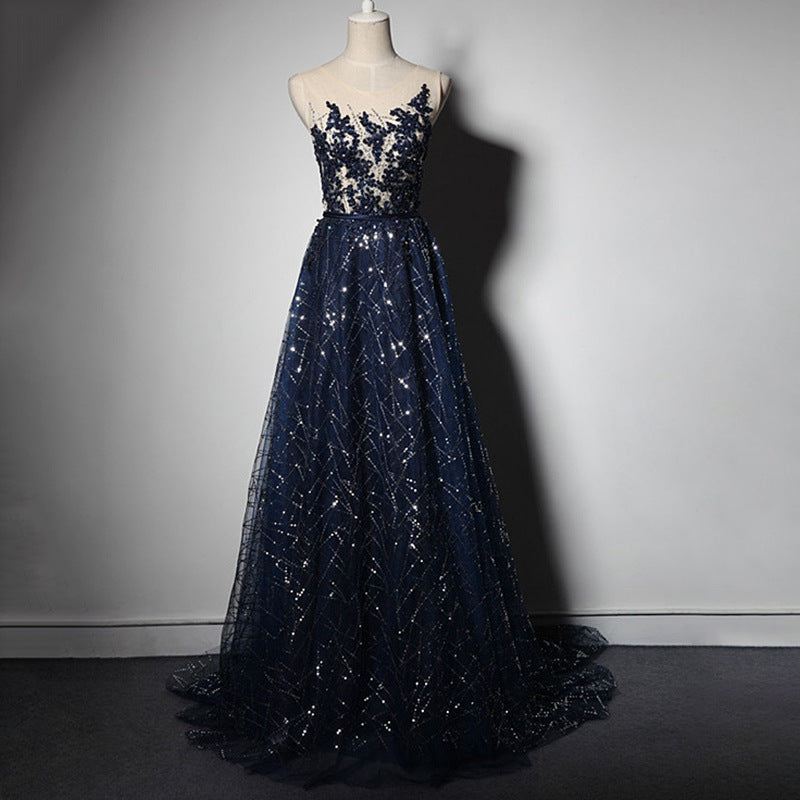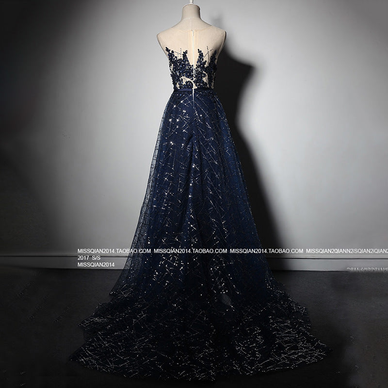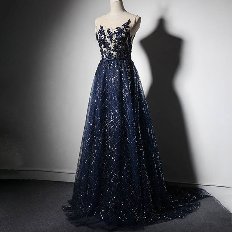 2025Banquet dress new fashionable and elegant navy blue long large size sleeveless bar mitzvah evening dress dress