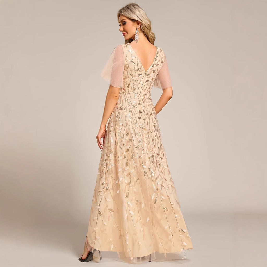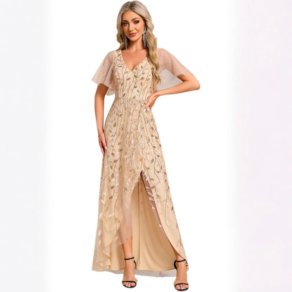 2025sequined V-neck split annual meeting dress new sexy catwalk banquet evening dress