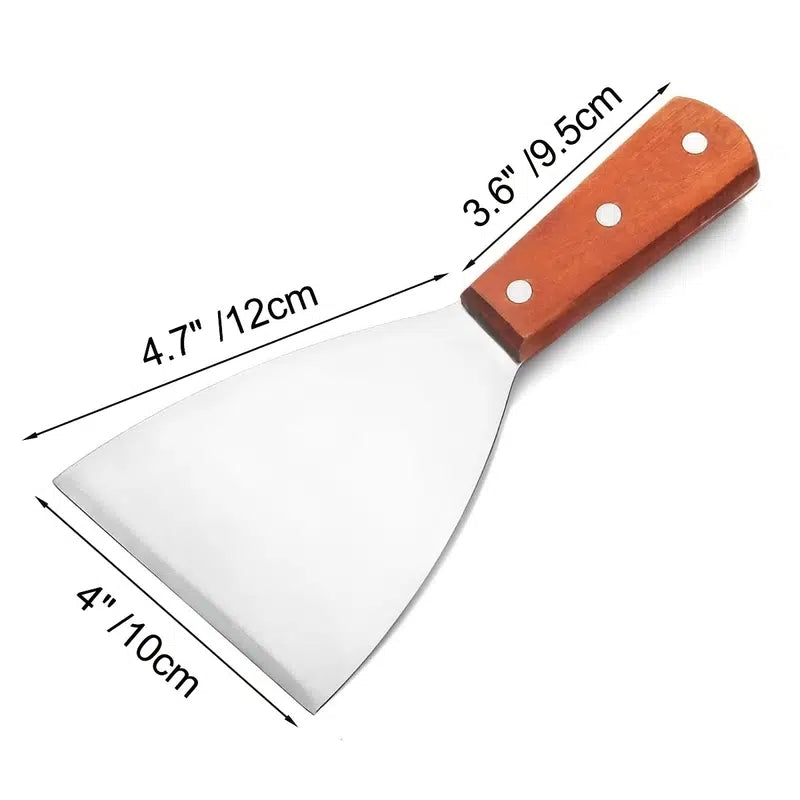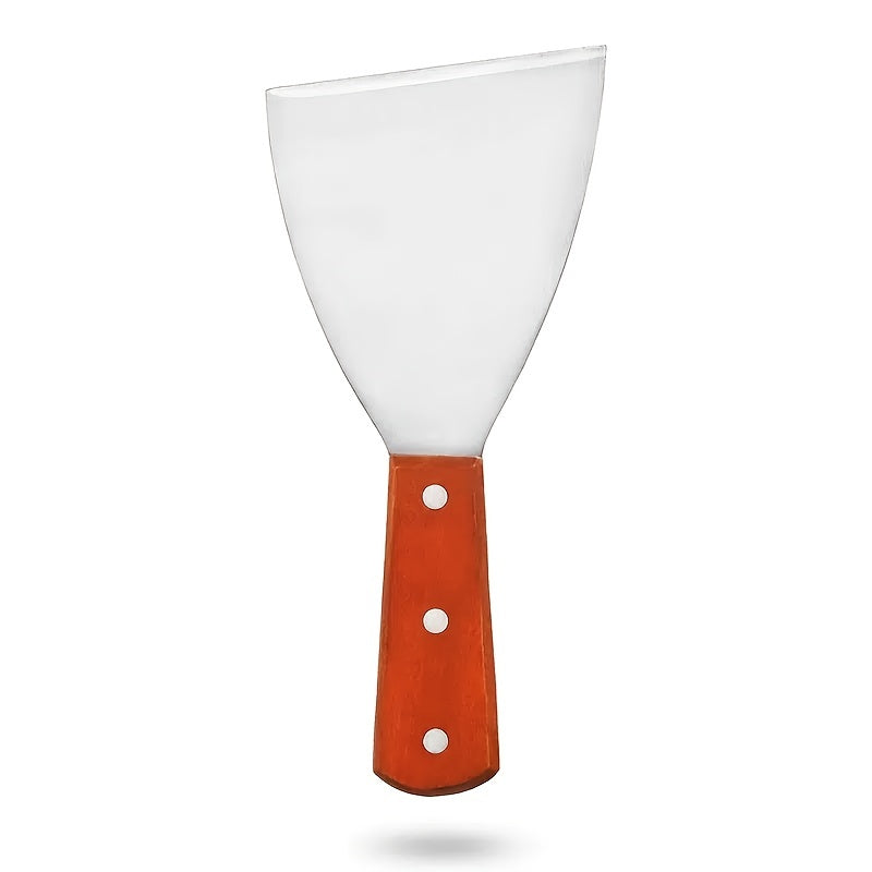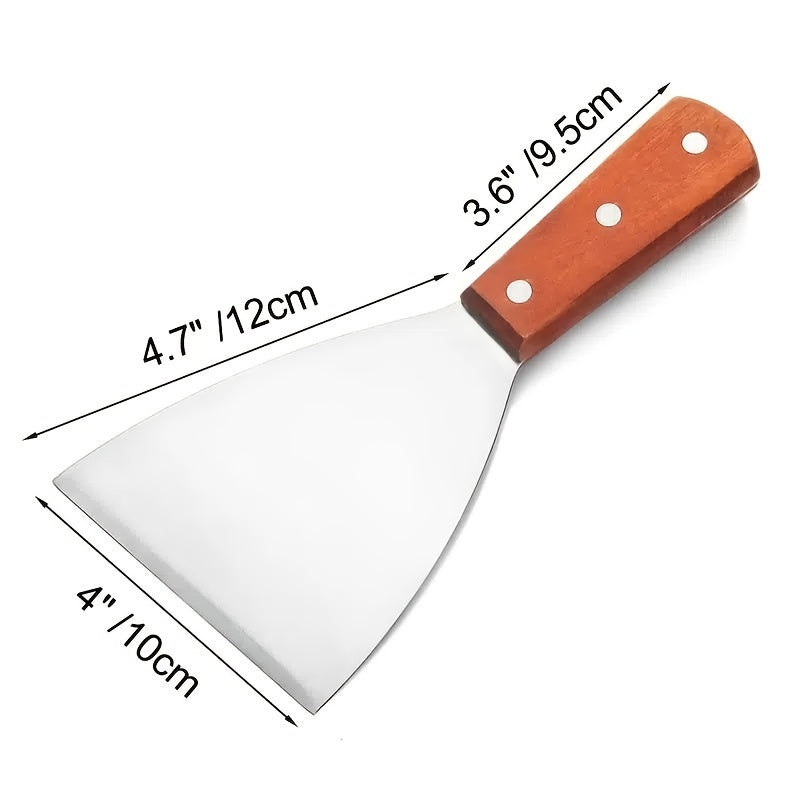 kkboxly 2pcs Stainless Steel Frying Shovel, Plain Scrapper With Wooden Handle, Pizza Shovel, Steak Shovel, Diagonal Shovel, Kitchen Tools, Large