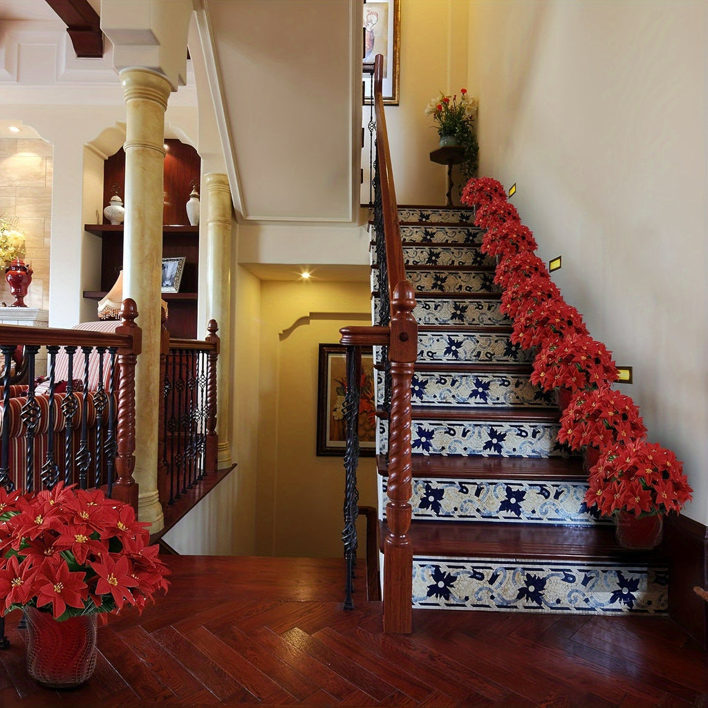 3-Pack Vibrant Artificial Poinsettia Plants - Lifelike 6-Head Plastic Fake Christmas Flowers with Realistic Leaves, Festive Red Poinsettias for Holiday Home Decor, Xmas Tree, Table Centerpieces, Wedding Decoration, and Seasonal Events