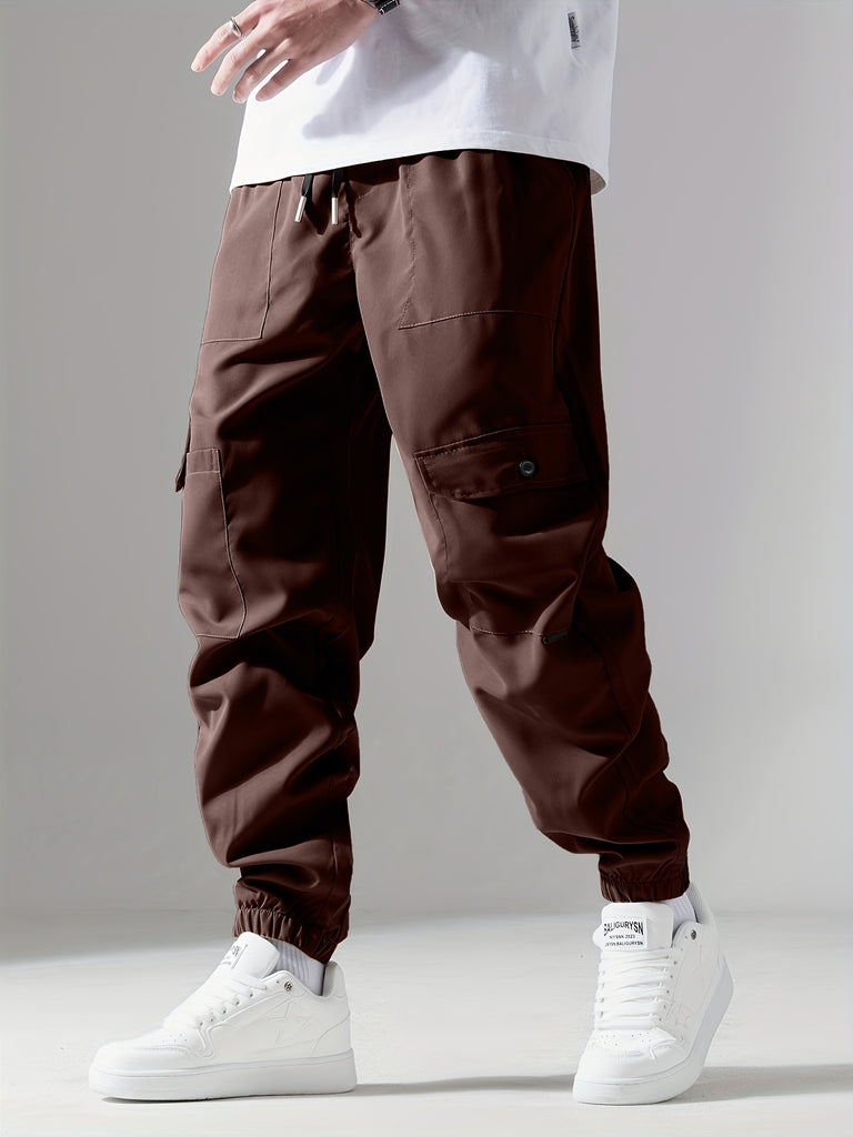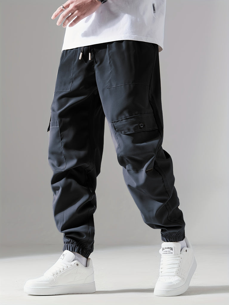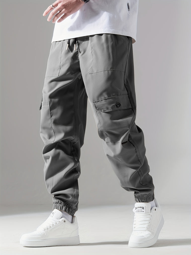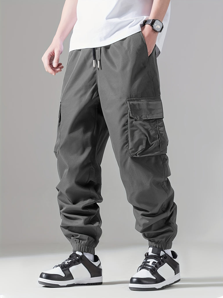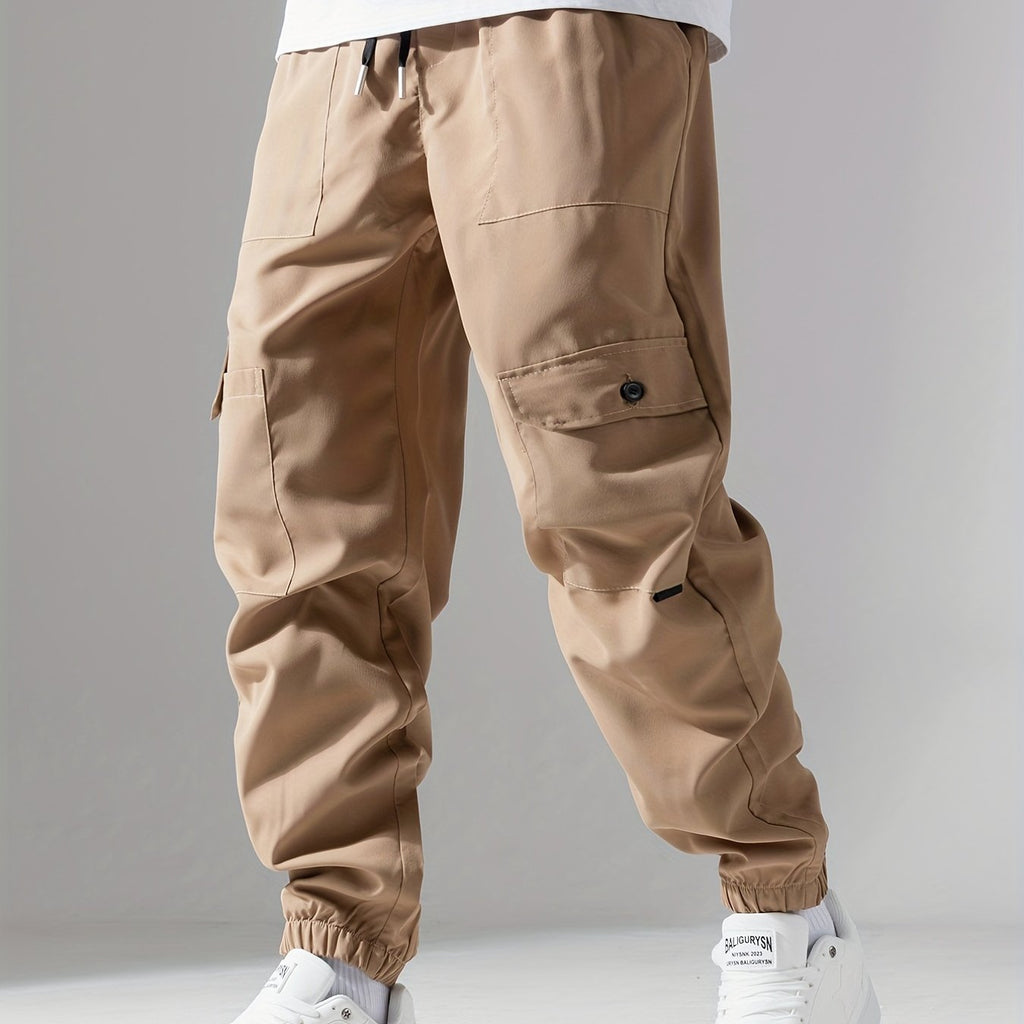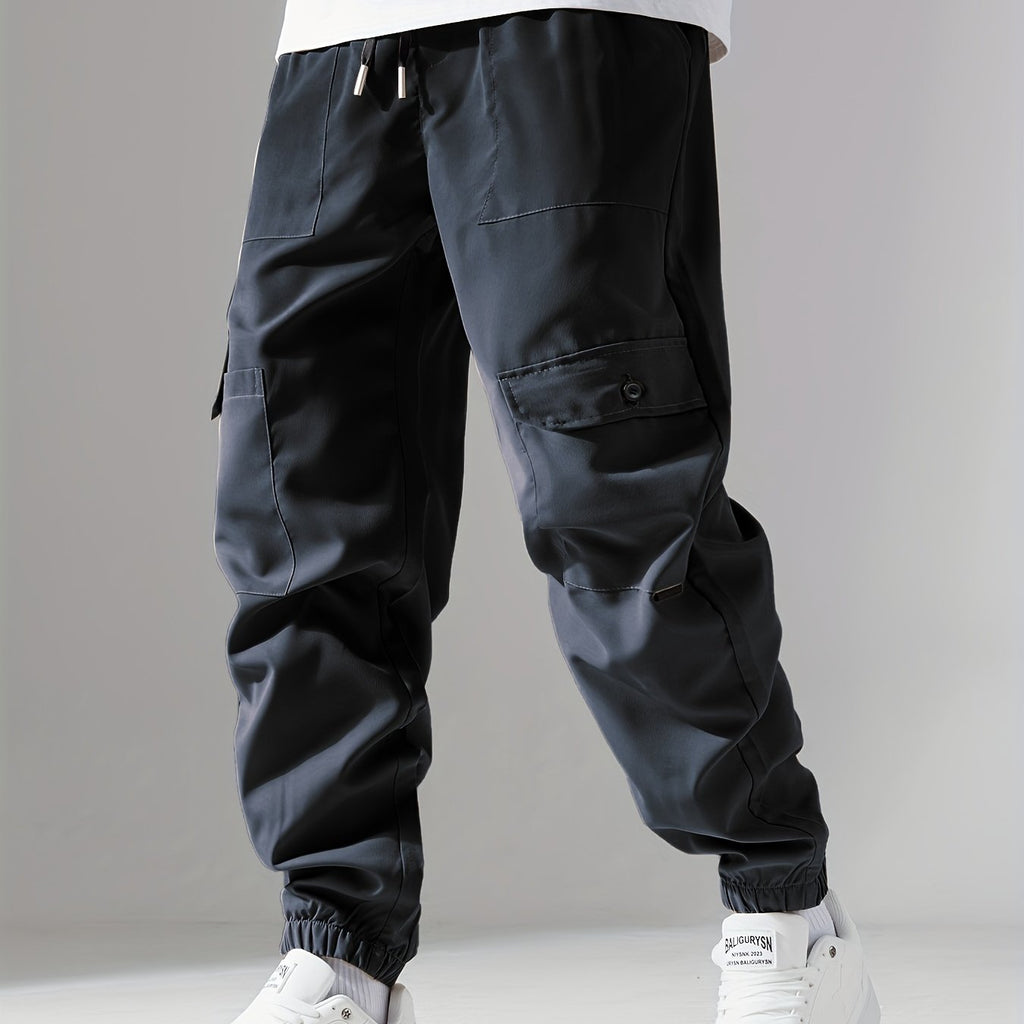 Casual Loose Fit Multi-pocket Drawstring Cargo Pants, Men's Joggers For Spring And Fall