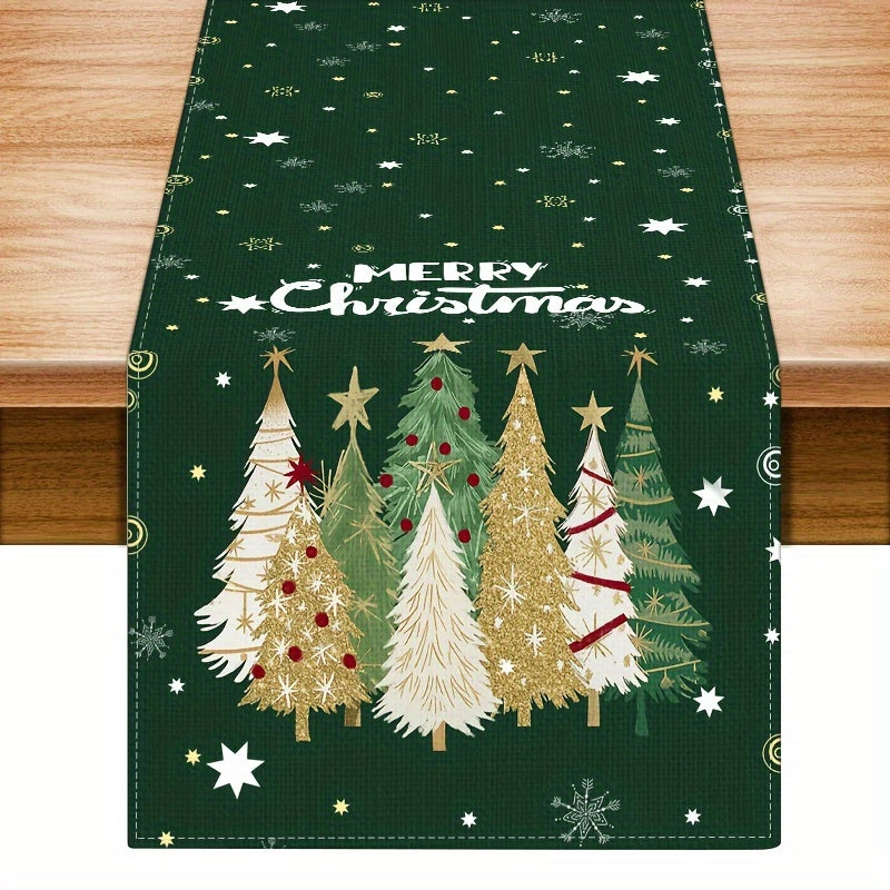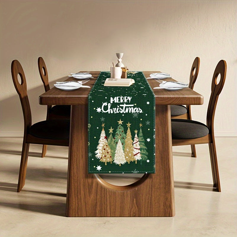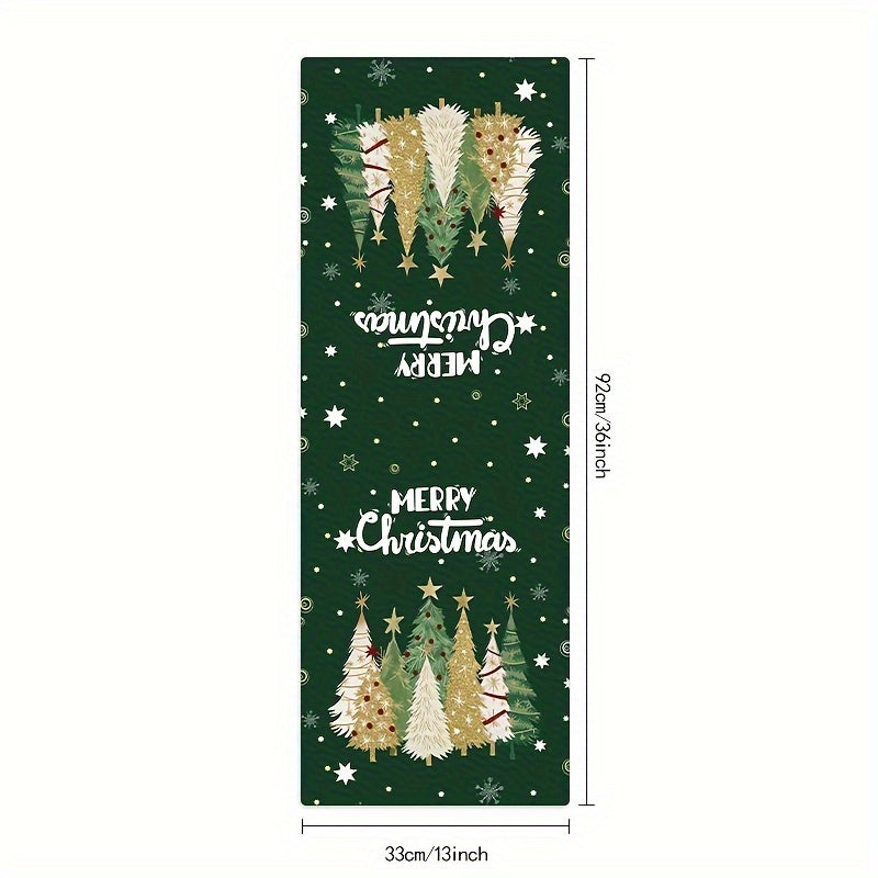 Christmas Holiday Festive Table Runner with Snowflake & Christmas Tree Design, 100% Polyester Woven Table Decoration, Santa Claus Pattern, Perfect for Seasonal Dining & Home Decor - 1PC