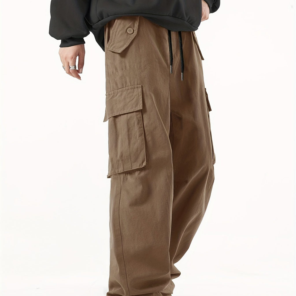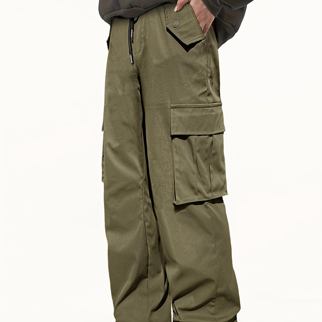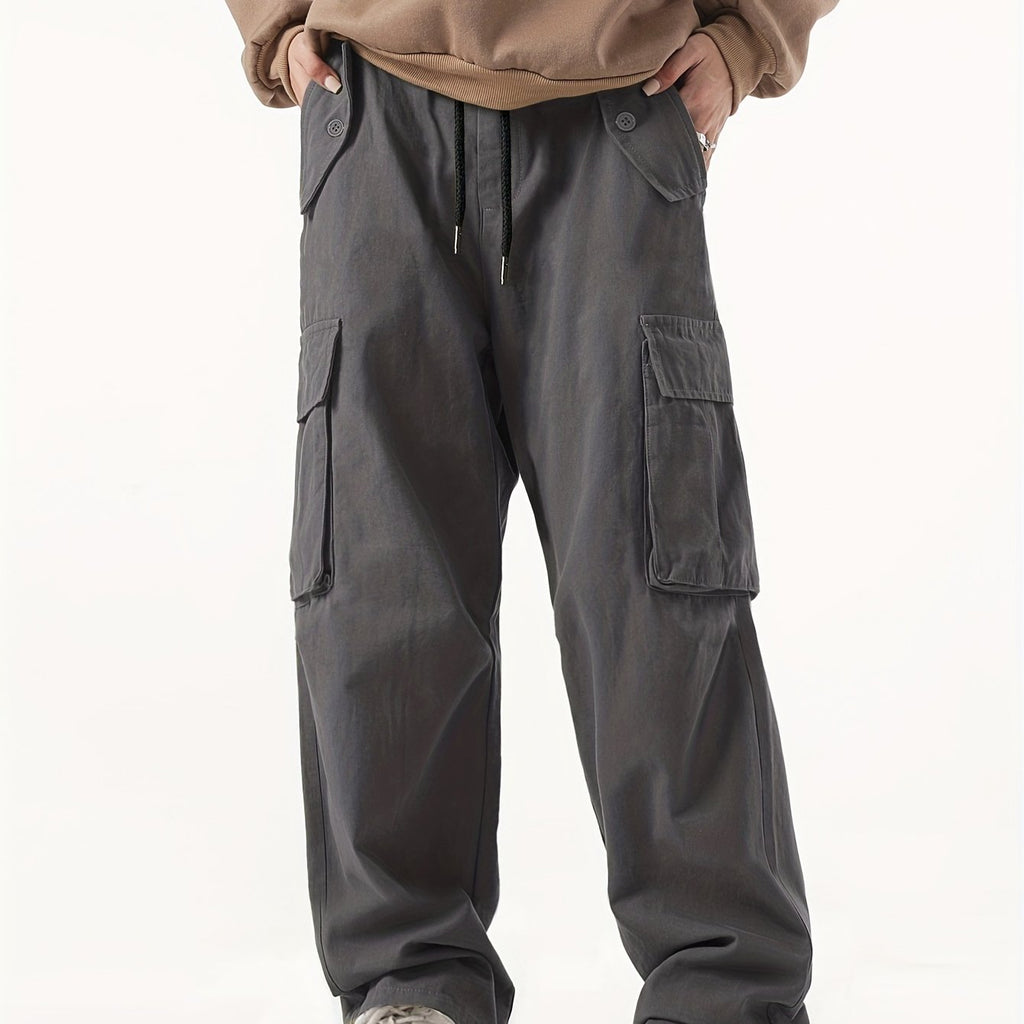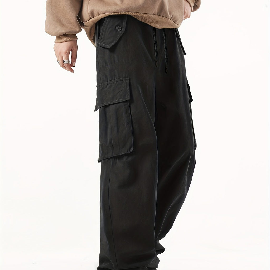 Classic Design Multi Flap Pockets Cargo Pants,Men's Loose Fit Drawstring Cargo Pants,For Skateboarding,Street,Outdoor Camping