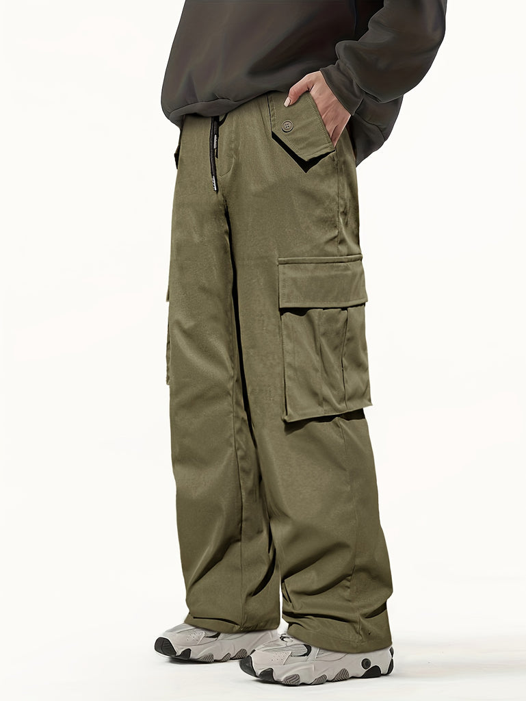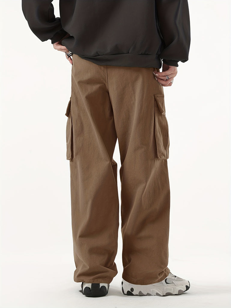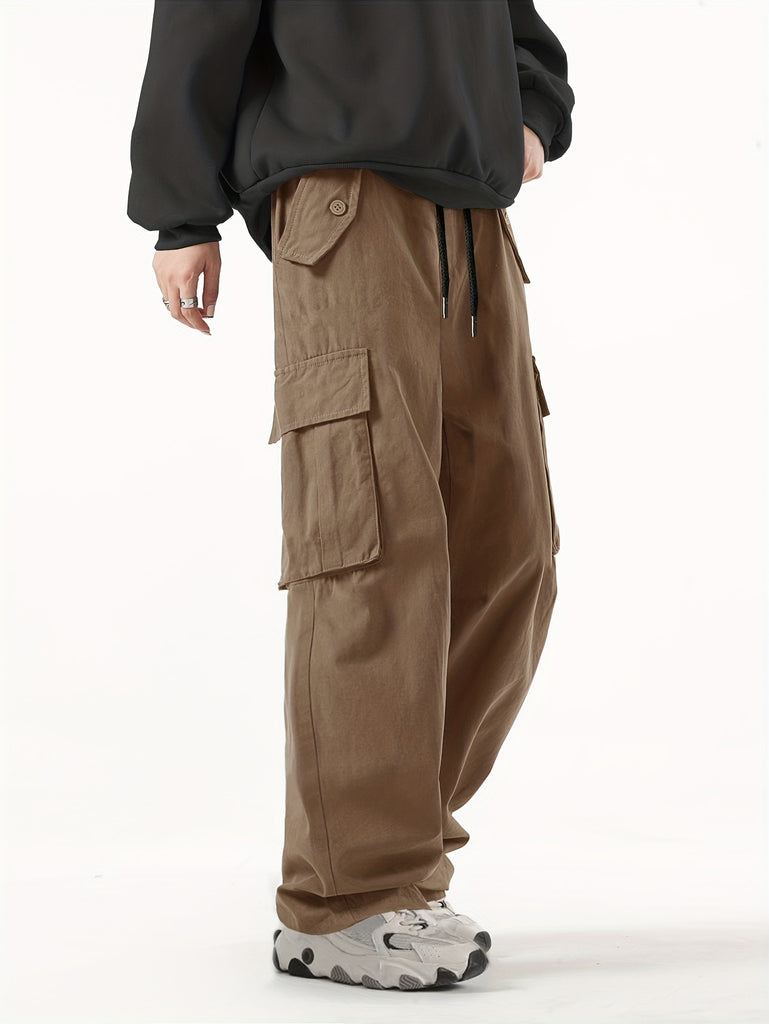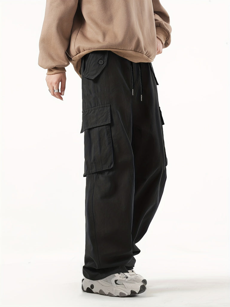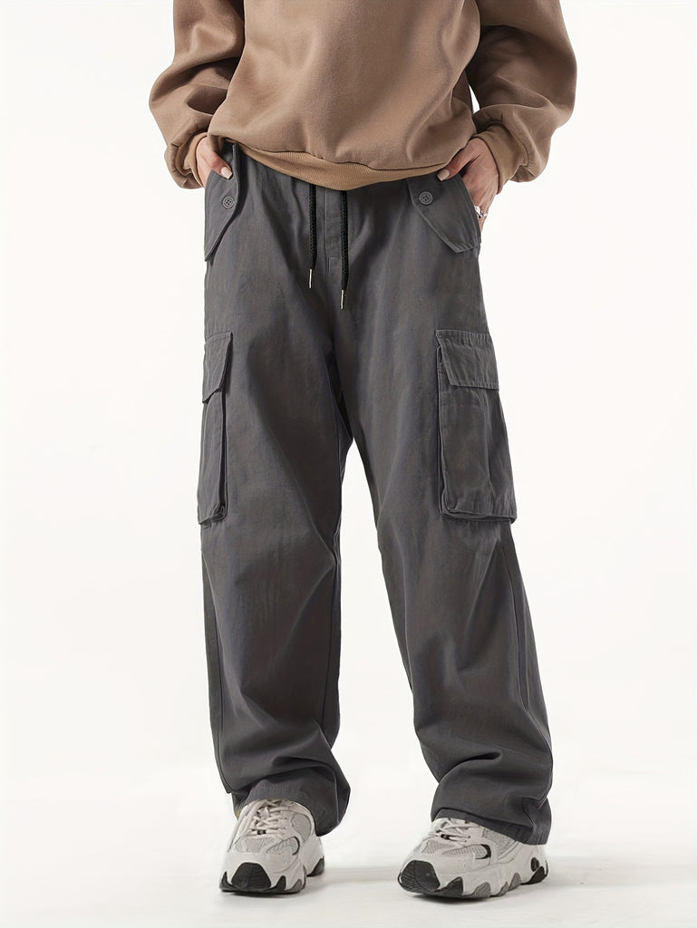 Classic Design Multi Flap Pockets Cargo Pants,Men's Loose Fit Drawstring Cargo Pants,For Skateboarding,Street,Outdoor Camping