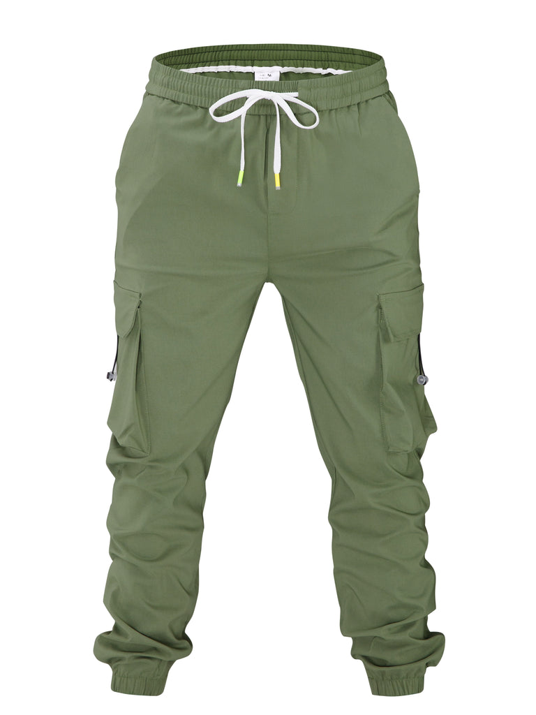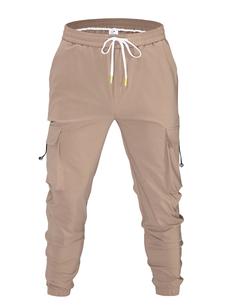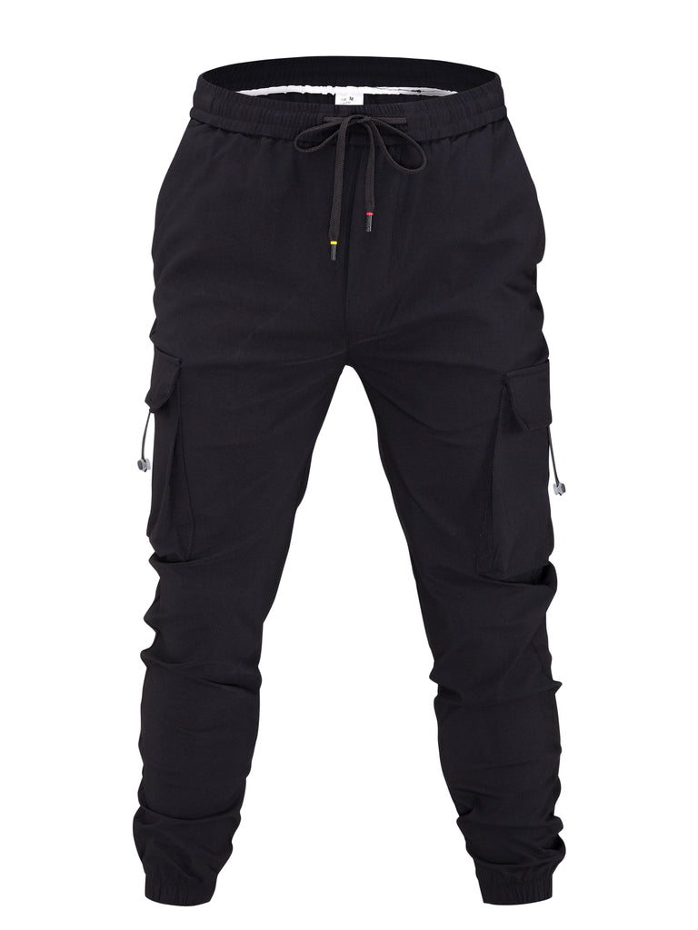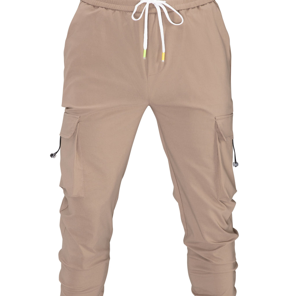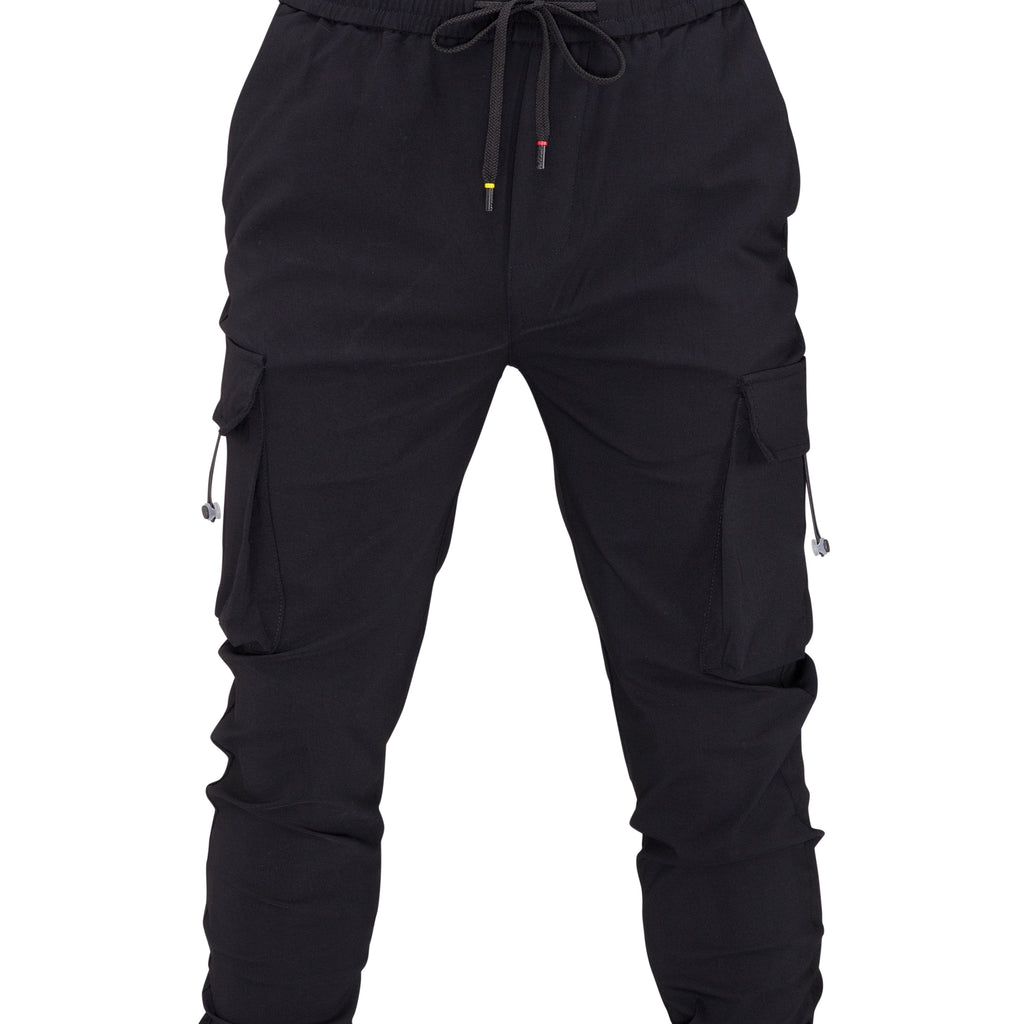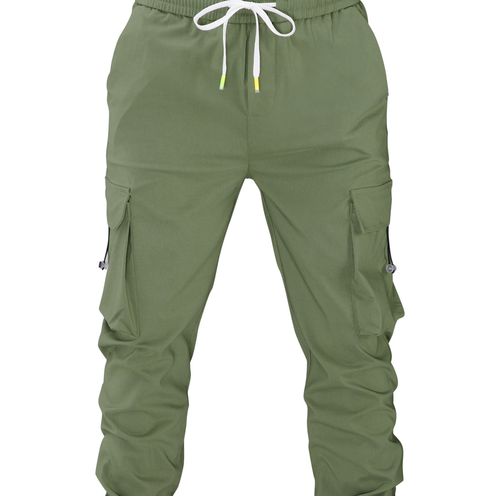 Classic Design Multi Pocket Cargo Pants, Men's Casual Loose Fit Drawstring Solid Color Cargo Pants/Joggers For Spring Summer Outdoor